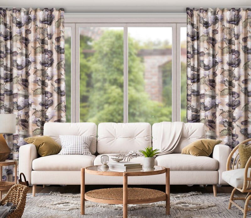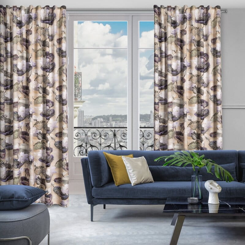 - Zasłona welwetowa na taśmie z ukrytymi szelkami z nadrukiem kwiatowym