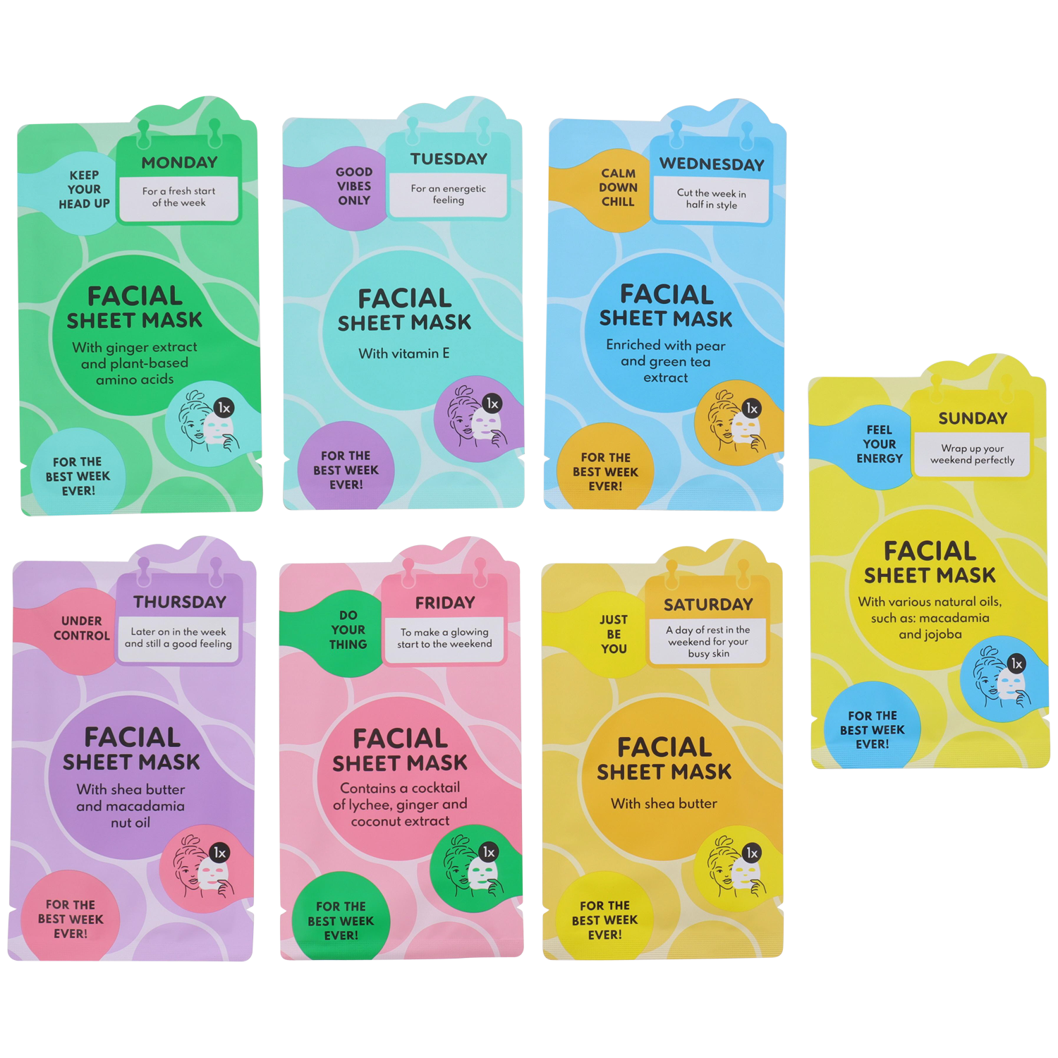 • Specjalna maseczka na każdy dzień tygodnia