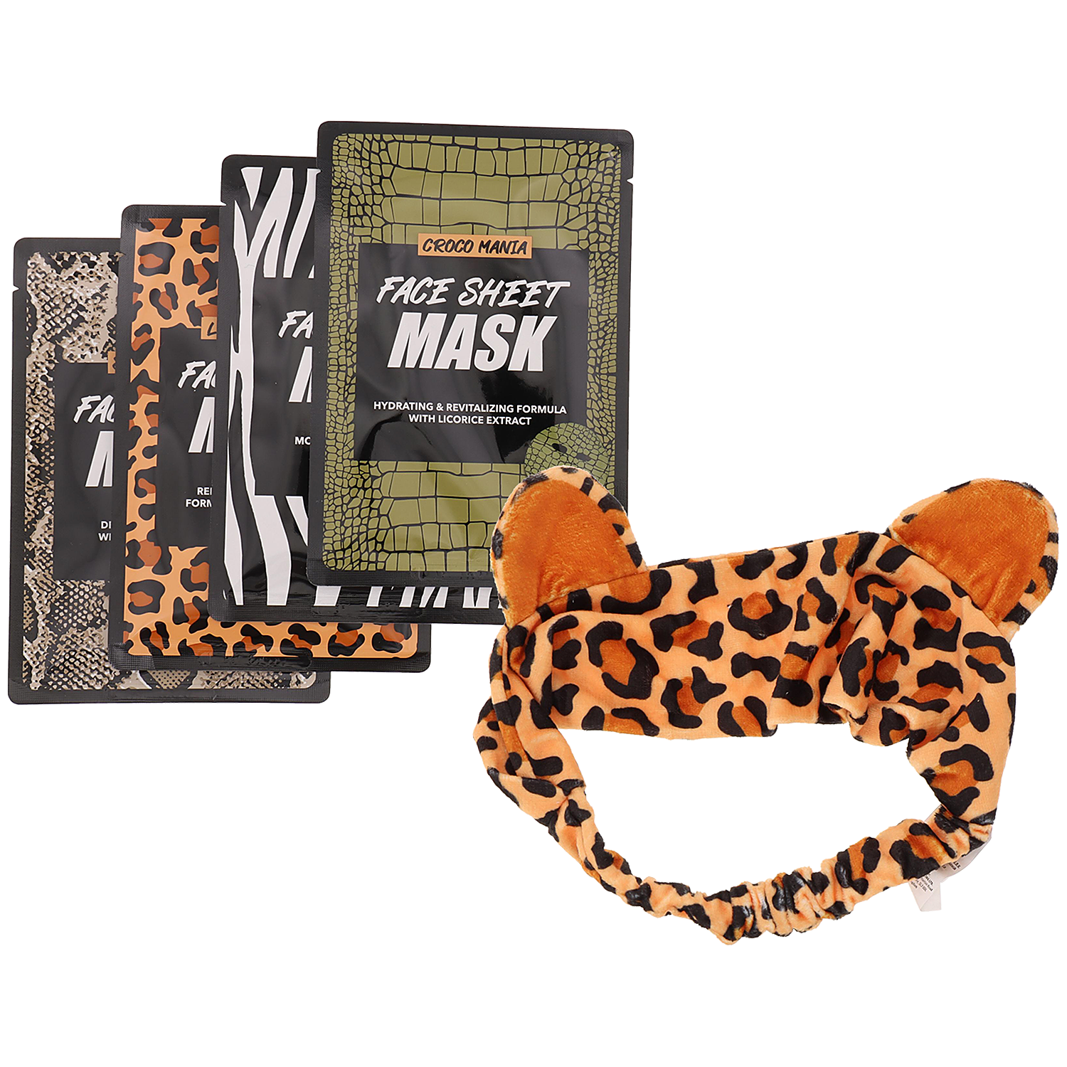 Zestaw 4 maseczek do twarzy pozwoli Ci na chwilę relaksu w pojedynkę lub z przyjaciółkami. Rozmaite urocze nadruki zwierzęce sprawią, że podczas wieczoru na własnej kanapie wybierzesz się na safari. Maski w płachcie są gotowe do użycia, wystarczy nałożyć je na twarz. Każda z nich działa na skórę inaczej, wybierz zatem odpowiednią dla siebie. Opaska do włosów w panterkę pozwoli relaksować się z włosami z dala od twarzy.