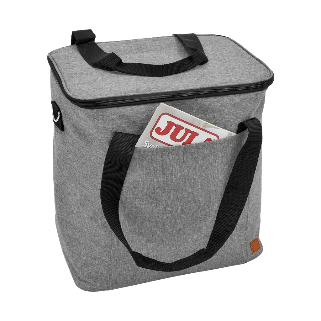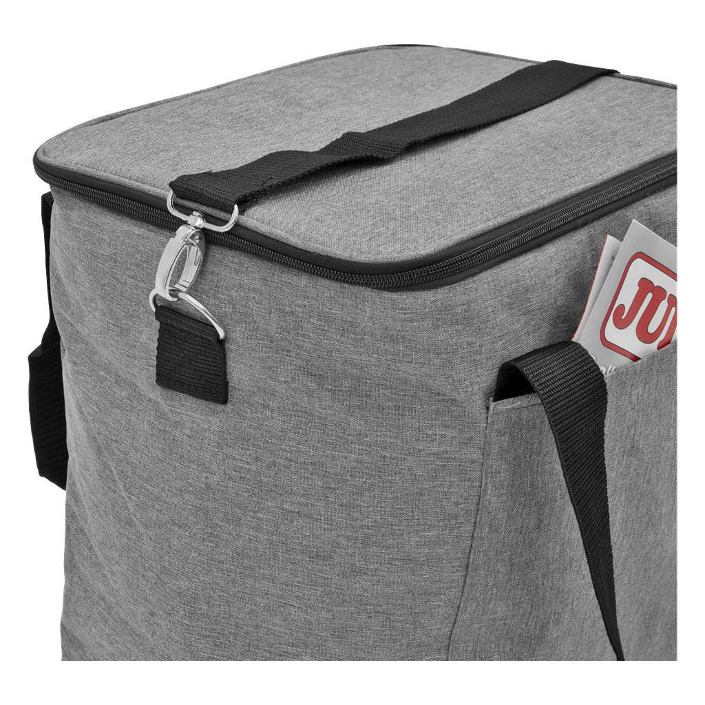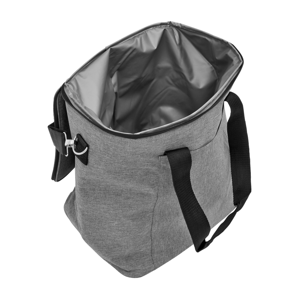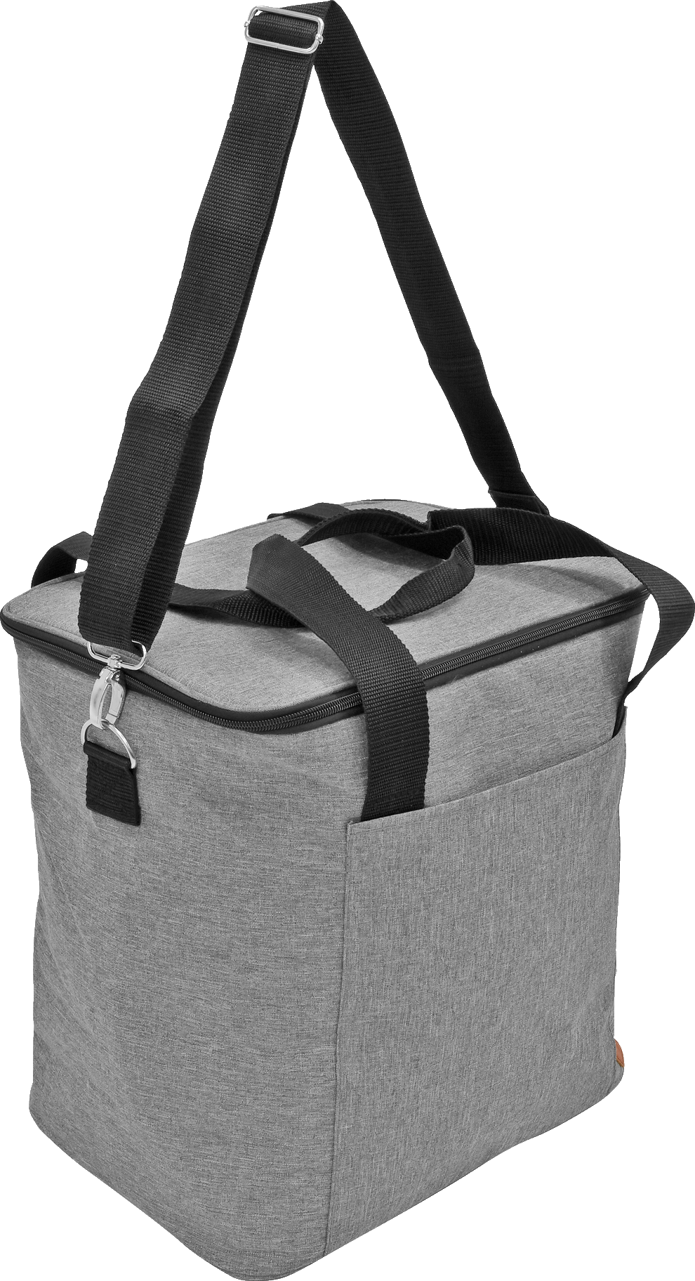 Elegancka i wysokiej jakości torba chłodząca z dużą ilością miejsca na jedzenie i napoje do wykorzystania na pikniku lub wycieczce. Dwustronny zamek błyskawiczny, uchwyt i regulowany pasek. Wyposażona w komorę przednią. Produkt wykonany z poliestru i tworzywa PEVA.