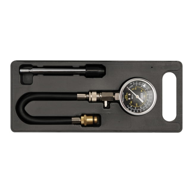 Zastanawiasz się, jak zmierzyć ciśnienie sprężania w silniku z iskrowym zapłonem? Prawidłowe wykonanie tego zadania umożliwi Ci prezentowany miernik. Funkcjonalny model wyposażony został w dwie rodzaje końcówek: stożkową gumową oraz wkręcaną w gniazdo świecy – pozwala to na łatwe dopasowanie go do własnych potrzeb. Całość znajduje się w praktycznej walizce.
