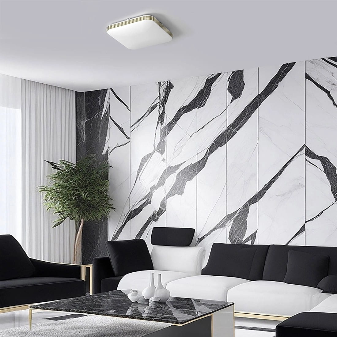 Plafon Dabar poza wysoką funkcjonalnością charakteryzuje się nowoczesnym designem z dominującym ponadczasowym białym kolorem klosza i efektownymi złotymi elementami, które dodają mu oryginalności i wyjątkowej elegancji. Prosta forma kwadratu zapewnia mu uniwersalny, nowoczesny wygląd, przez co sprawdzi się świetnie we wnętrzach o różnorodnej stylistyce. Materiały, z których został wykonany, to wysokiej jakości tworzywo sztuczne i metal, co gwarantuje trwałość i solidność konstrukcji oraz estetyczny wygląd na długi czas.