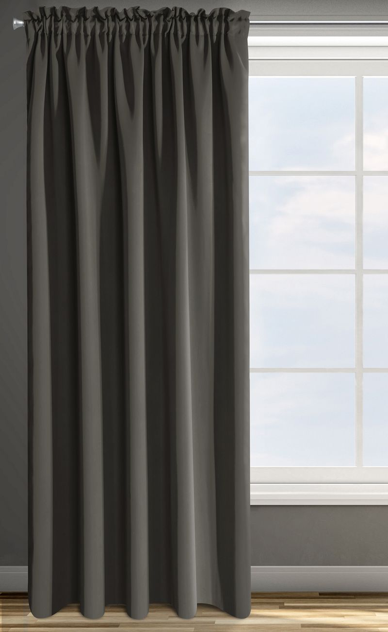 - Zasłona zaciemniająca z mięsistej tkaniny typu blackout. Doskonała izolacja cieplna i akustyczna wnetrza. Jednokolorowa zasłona o minimalistycznym designie.