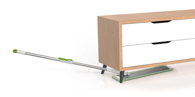 Doskonały do mycia podłóg na sucho i mokro, z przegubem 3D do łatwego wycierania pod meblami i w narożnikach.