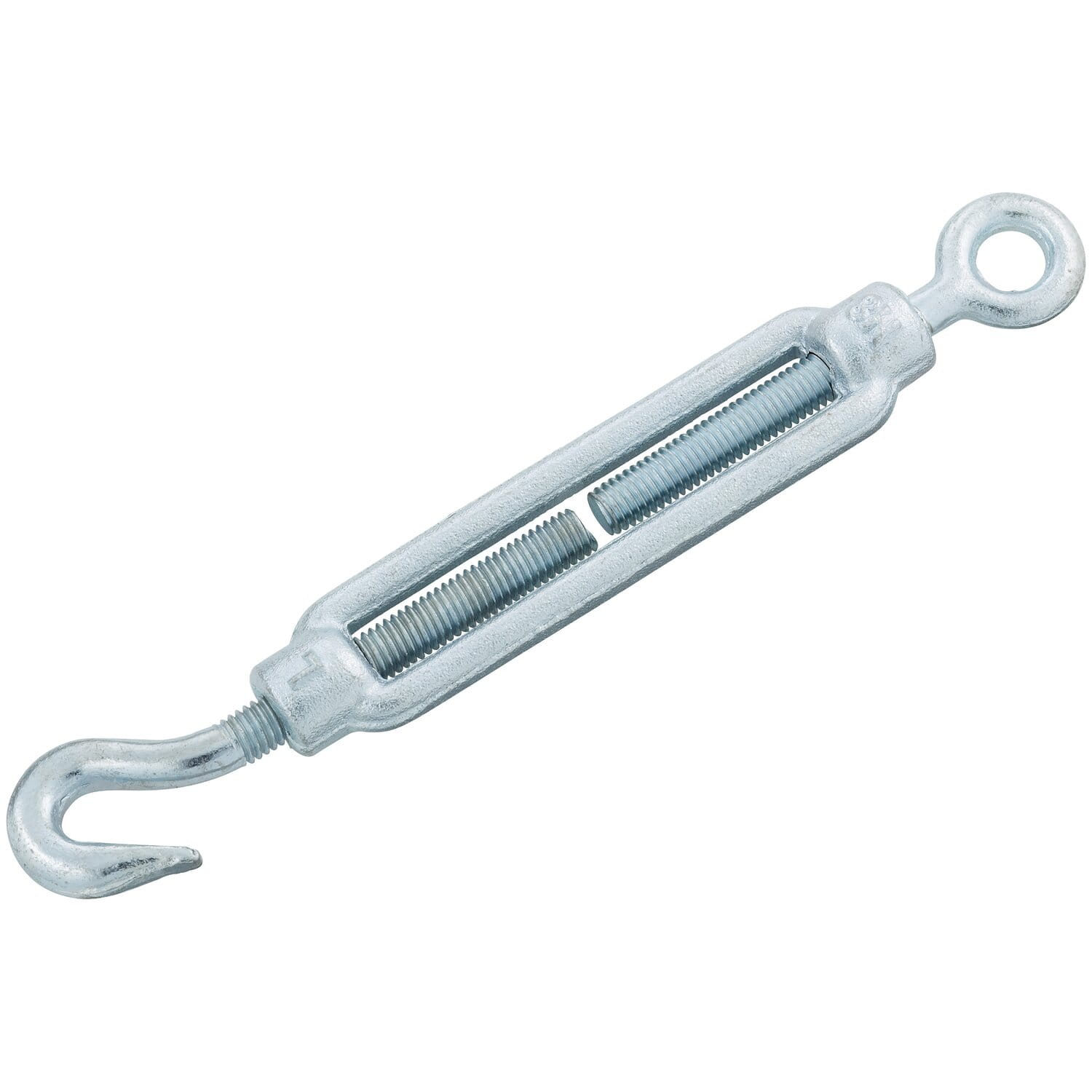 Napinacz marki LUX-TOOLS do napinania lin. Wykonany z ocynkowanej stali, zgodnie z normą DIN 1480. Wersja z hakiem i uchem, rozmiar M 8 x 110 mm.