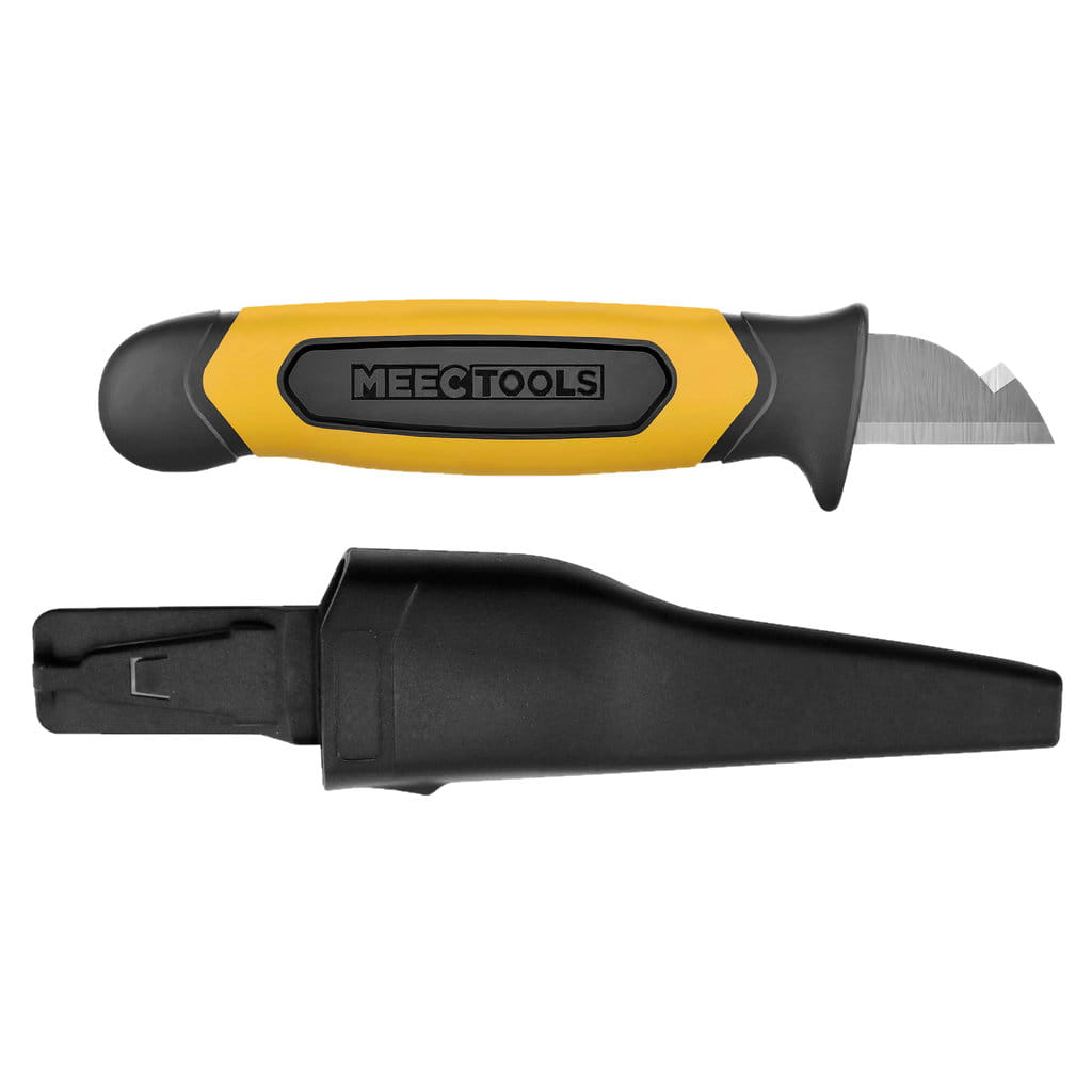 Nóż dla elektryków marki Meec Tools to krótki nóż z dwiema krawędziami tnącymi, doskonały do zdejmowania izolacji z przewodów. Idealny przyrząd do układania przewodów elektrycznych!