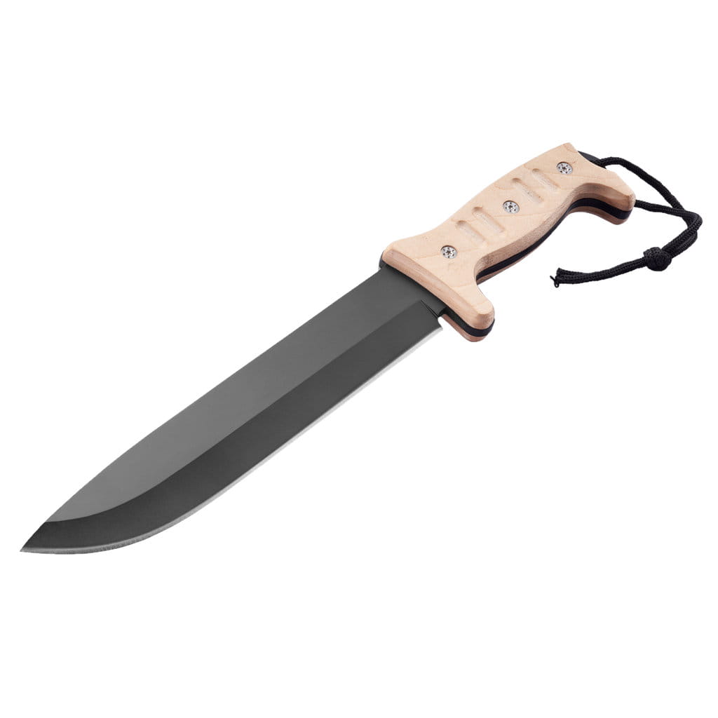 Drewniany trzonek zapewnia dużą powierzchnię chwytną i stabilny uchwyt. Ładne detale ze stali nierdzewnej po bokach. U góry znajduje się pasek na nadgarstek.