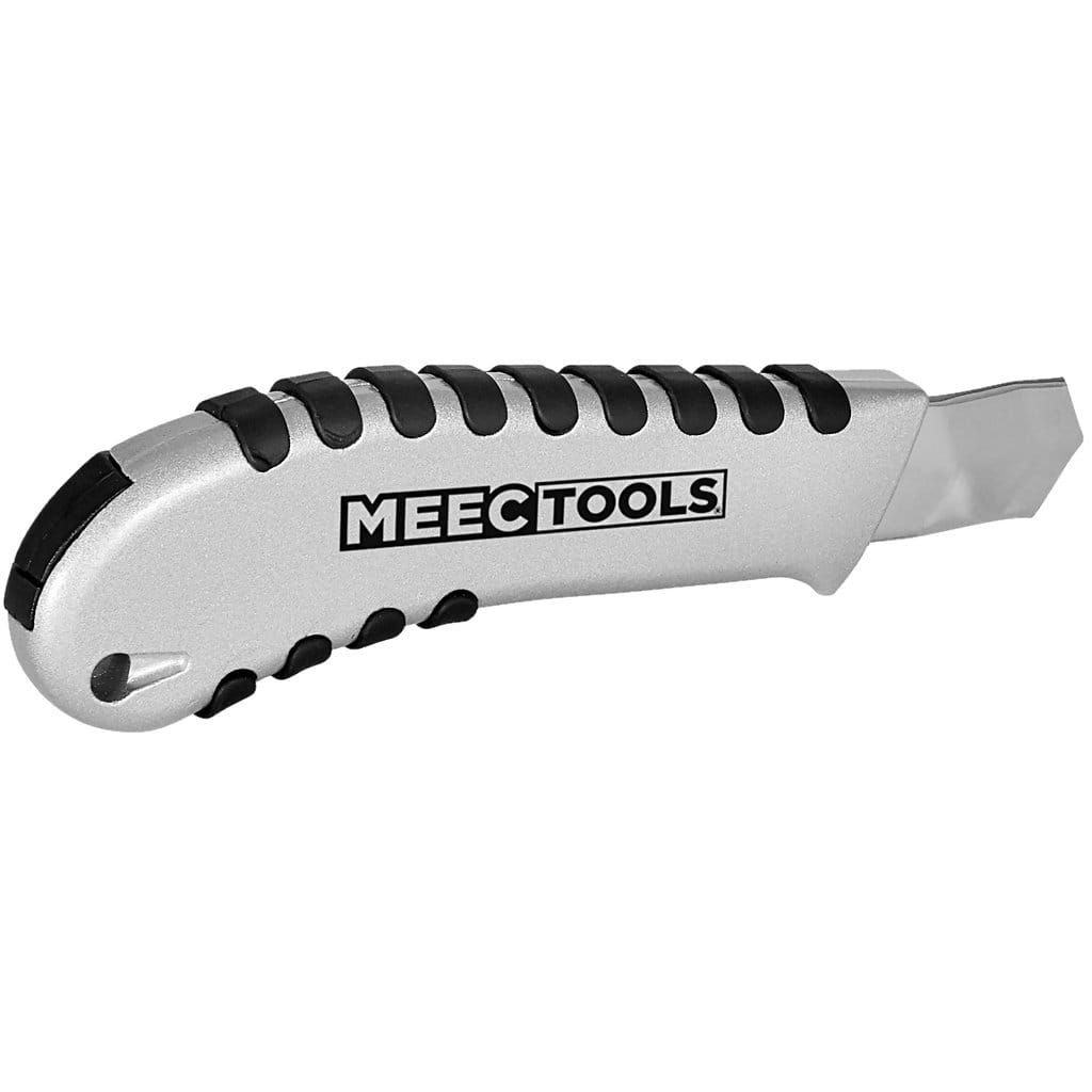 Nożyk introligatorski marki Meec Tools z wymiennymi ostrzami o szerokości 18 mm nadaje się idealnie do wszechstronnych zastosowań, takich jak np. cięcie tworzywa i tektury lub usuwanie izolacji z przewodów. Obudowa nożyka została wykonana z metalu, co zapewnia długi okres użyteczności.
