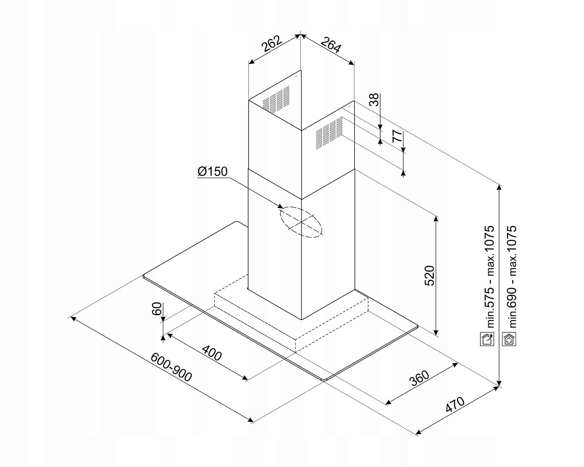 - ✔️ Minimalna odległość od płyty gazowej 650