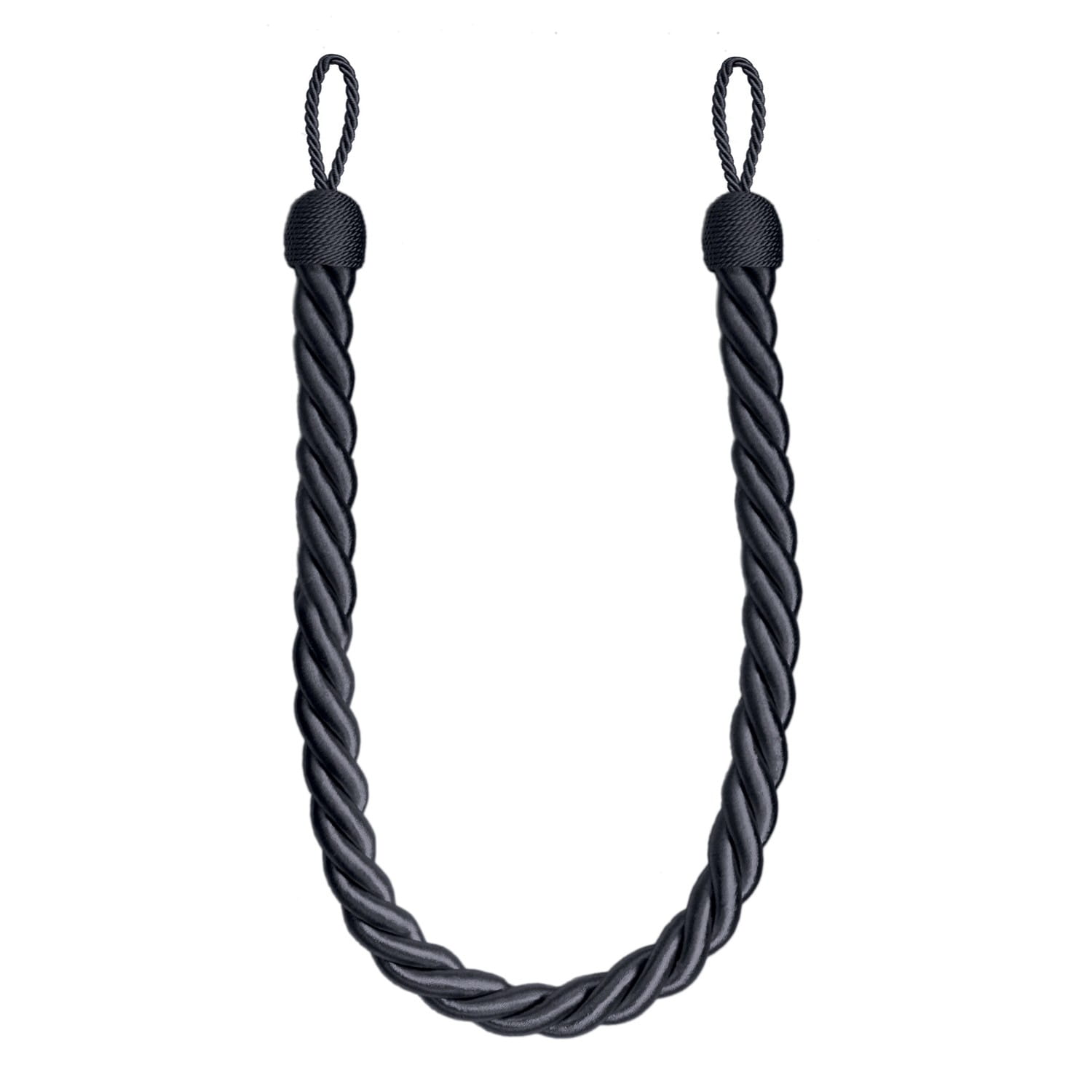 Obejma do zasłon - czarny sznur, upinacz. Jest to wykonane z wysokiej jakości materiałów, ozdobne akcesorium służące do upinania firan i zasłon. Stanowi niezwykle elegancką, oryginalną a jednocześnie funkcjonalną ozdobę ułatwiającą stworzenie wyjątkowej dekoracji okna, która nada wnętrzu niepowtarzalnego charakteru i stylu. Średnica sznura 2,1 cm.
