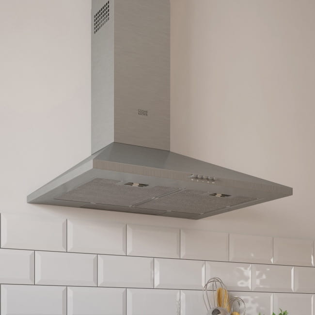 Chcesz cieszyć się idealną przestrzenią do przyrządzania smacznych posiłków? Nie zapomnij o wyposażeniu kuchni w prezentowany okap kominowy, który pochłonie wydzielające się w czasie przygotowywania potraw zapachy. Model utrzymany w srebrnym kolorze będzie doskonale wyglądał w połączeniu z innymi metalicznymi akcesoriami.
