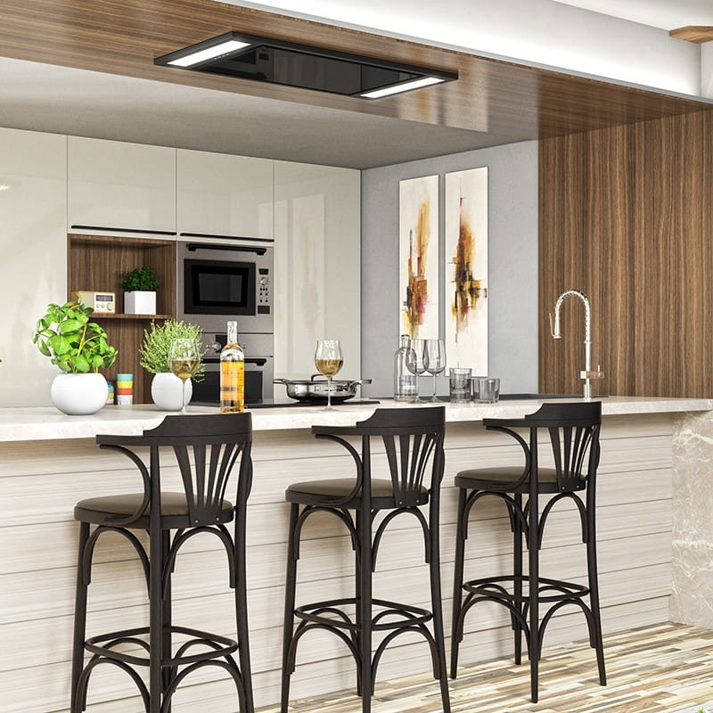 Klasa energetyczna B, sufitowy, szer. 100 cm, gł. 50 cm, sterowanie za pomocą pilota, zakres prędkości: 3 + boost, wydajność max. 590 m3/h, głośność min. 52 dB, wykonanie: czarne szkło, stal lakierowana na kolor czarny, oświetlenie diodowe 2 x 13 W, dodatki: pilot. Linia GLOBALO Design Zalety i korzyści dla użytkownika okapu Bardot 100.1 Black Szukasz dyskretnego, lecz w pełni funkcjonalnego urządzenia, które pochłonie wszelkie opary z Twojej kuchni? Absolutnie minimalistyczna forma okapu sufitowego Bardot 100.1 Black z pewnością zawładnie Twoim sercem.✅Dane szczegółowe:
