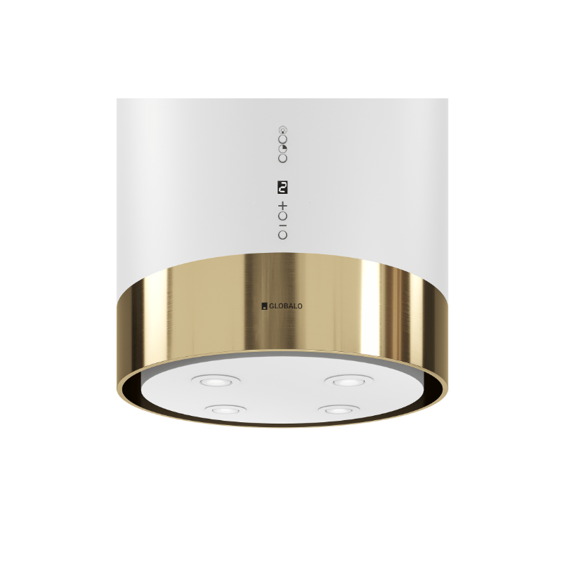 klasa energetyczna B, wyspowy, szer. 39 cm, sterowanie klawiszami Soft-Touch, zakres prędkości: 3 biegi + boost, wydajność max. 742 m3/h, głośność min. 46 dB, wykonanie: stal szlachetna lakierowana na kolor złoty, oświetlenie POWER LED 4 x 2 W. Linia GLOBALO Exclusive Zalety i korzyści dla użytkownika okapu Cylindro Isola 39.6 Light Gold Ring Cylindryczny okap wyspowy to efektowne urządzenie, dzięki któremu wyspa kuchenna będzie nie tylko ozdobą pomieszczenia, ale również komfortową powierzchnią roboczą, znakomicie przystosowaną do przygotowywania posiłków.✅Dane szczegółowe: