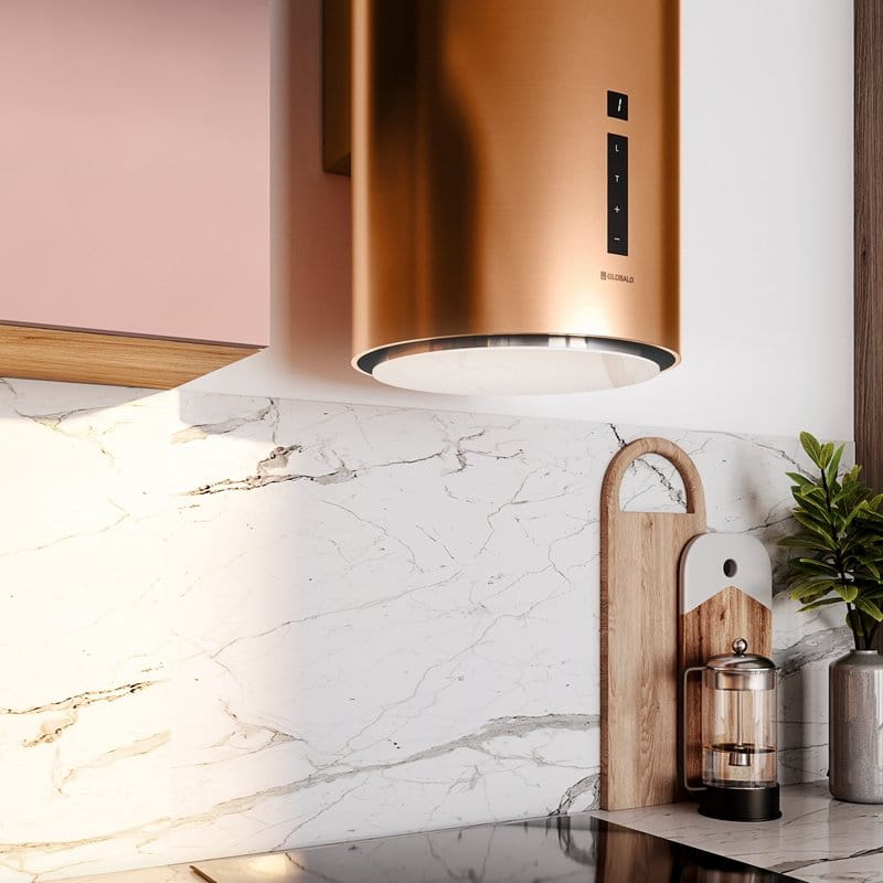 Klasa energetyczna: B, przyścienny, okrągły, gł. 49 cm, sterowanie sensorowe (dotykowe) ze wskaźnikiem LED, zakres prędkości: 3 + boost, wydajność max. 660 m3/h, głośność min. 43 dB, wykonanie: stal lakierowana na kolor miedziany matowy, oświetlenie LED 9 W, dodatki: funkcja timer. Linia GLOBALO Silent Quality Zalety i korzyści dla użytkownika okapu Heweno 39.3 Miedz Mat Prawdziwa perełka wśród przyściennych okrągłych okapów kuchennych – Heweno 39.3 Miedz Mat zachwyca oryginalną stylistyką i ponadczasowością użytych materiałów. Prezentowany przez nas model to połączenie nowoczesnej technologii, wysokiej funkcjonalności i wyjątkowego designu. Maksymalna wydajność: 660 m3/h Sterowanie dotykowe Energooszczędne oświetlenie LED Klasa efektywności energetycznej B Barwa oświetlenia: 4000K z możliwością regulacji natężenia. Funkcjonalności: Prezentowany okap przyścienny okrągły może działać w dwóch trybach. Pochłaniacz szybko i sprawnie filtruje powietrze w kuchni, natomiast wyciąg (po podłączeniu do kanału wentylacyjnego) odprowadza opary na zewnątrz. Filtry aluminiowy i węglowy zapewniają nienaganną pracę urządzenia. Filtr aluminiowy pochłania tłuste drobiny i uwalnia sprzęty kuchenne od nieprzyjemnej w dotyku lepkiej warstwy. Natomiast filtr węglowy można zamówić opcjonalnie, jeżeli urządzenie pracuje w trybie pochłaniacza (zawarte w nim cząsteczki aktywnego węgla neutralizują przykre zapachy). Przyjazne dla oka, a zarazem wyjątkowo stylowe oświetlenie LED w postaci eleganckiego plafonu, staje się dodatkową dekoracją kuchni. Na szczególną uwagę zasługuje cicha praca sprzętu – od 43 dB – która przyczynia się do zwiększenia komfortu użytkowania pomieszczenia. 4-stopniowy zakres intensywności działania z funkcją boost pozwalają dostosować pracę okapu do indywidualnych potrzeb. Okap kuchenny Heweno 39.3 Miedz Mat sterowany jest sensorycznie (dotykowo). Okap Heweno 39.3 Miedz Mat współpracuje z turbinami zewnętrznymi TW i TZ. Przeznaczenie: Heweno 39.3 Miedz Mat to klasa, styl i elegancja zestawiona z najnowocześniejszą technologią oraz wysoką funkcjonalnością. Model ten sprawdzi się w nowocześnie zaaranżowanej kuchni. Zadbaliśmy tutaj o każdy, nawet najmniejszy szczegół, tworząc produkt na miarę XXI wieku. Materiały: Połączenie stali lakierowanej na kolor miedziany oraz wygodnego sterowania dotykowego pozwoliło stworzyć okap o niebanalnej stylistyce i ponadczasowym designie. Dobrze wiedzieć! Okap okrągły Heweno 39.3 Miedz Mat to urządzenie wyjątkowo skuteczne i energooszczędne. Id produktu✅Dane szczegółowe: