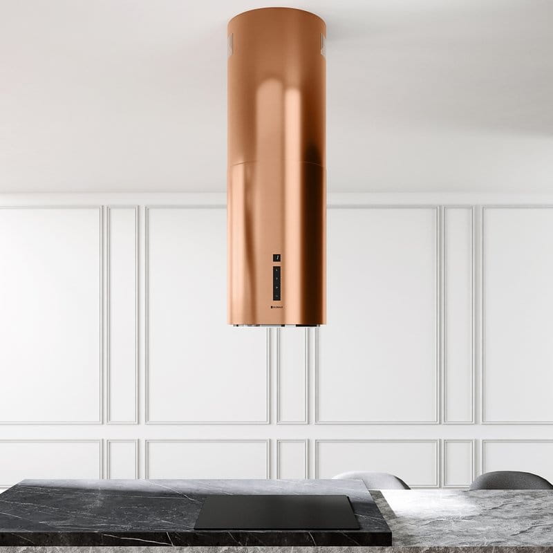 klasa energetyczna A, wyspowy, szer. 39 cm, sterowanie sensorowe (dotykowe) ze wskaźnikiem LED, zakres prędkości: 3 biegi + boost, wydajność max. 620 m3/h, bardzo cicha praca min. 42 dB, wykonanie: stal lakierowana na kolor miedziany, oświetlenie POWER LED 9 W. Linia GLOBALO Silent Quality Zalety i korzyści dla użytkownika okapu Heweno Isola 39.1 Miedz Mat Cylindryczny okap wyspowy to efektowne urządzenie, dzięki któremu wyspa kuchenna będzie nie tylko ozdobą pomieszczenia, ale również komfortową powierzchnią roboczą, znakomicie przystosowaną do przygotowywania posiłków.✅Dane szczegółowe: