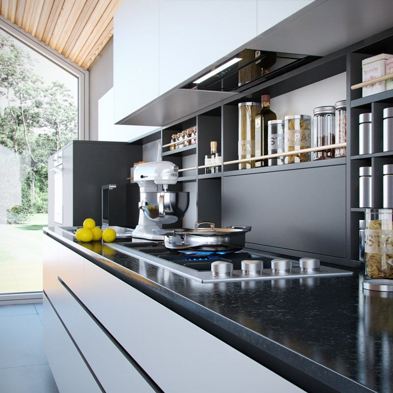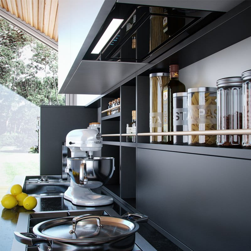 Klasa energetyczna B, do zabudowy, szer 60, gł 29 cm, sterowanie sensorowe (dotykowe) z wyświetlaczem LED, zakres prędkości: 3 + boost, wydajność max. 525 m3/h, głośność min. 48 dB, wykonanie: czarne hartowane szkło, stal lakierowana na czarno, oświetlenie pasek LED 5 W, dodatki: pilot. Linia GLOBALO Design Zalety i korzyści dla użytkownika okapu Loteo 60.4 Black Wyjątkowo kompaktowe wymiary, stylowy front i świetne osiągi – okap kuchenny Loteo 60.4 Black zachwyci wszystkich, którzy szukają rozwiązań praktycznych i gustownych zarazem. Maksymalna wydajność: 525 m3/h Hartowane szkło Sterowanie dotykowe + pilot Funkcjonalności: Okap kuchenny podszafkowy Loteo 60.4 działać może w dwóch trybach: pochłaniacza oraz wyciągu. Pochłaniacz absorbuje niepożądane substancje i zapachy, a czyste powietrze wraca do kuchni. Z kolei wyciąg wyprowadza zanieczyszczenia na zewnątrz – konieczne jest jednak podłączenie okapu do kanału wentylacyjnego. Okap do zabudowy meblowej Loteo można uzupełnić o dwa rodzaje filtrów: aluminiowy i węglowy. Aluminiowy kumuluje tłuste drobinki i uwalnia szafki od trudnej do usunięcia tłustej warstwy. Natomiast filtr węglowy (który zainstalować należy jedynie w trybie pochłaniacza) – zwalcza dokuczliwe zapachy. Schowany w szafce okap jest cichy (48 dB na pierwszym biegu), a więc nie powoduje dyskomfortu wśród osób przebywających w kuchni. Oświetlenie w postaci paska LED o mocy 5 W jest energooszczędne i doskonale rozjaśnia miejsce pracy. Okapem kuchennym pod zabudowę Loteo można sterować dotykowo (panel posiada także wyświetlacz LED) lub zdalnie – za pomocą dołączonego do zestawu pilota. 3 zakresy prędkości + boost – pozwalają na dostosowanie szybkości wyciągania oparów do ich ilości w kuchni. Przeznaczenie: Okap kuchenny Loteo, dzięki szerokości zaledwie 60 cm, można dopasować do niemalże każdej kuchennej szafki. Materiały: Okap Loteo 60.4 Black wykonany został z szykownego, czarnego szkła hartowanego. Dobrze wiedzieć! Okap wyposażony został w pochłanianie szczelinowe, dlatego łatwo go utrzymać w czystości. Okap z szafką: konfigurator 3D Niejednokrotnie problemem bywa idealne dopasowanie szafki pod okap do zabudowy oraz jego montaż. Ułatwieniem jest gotowy zestaw, dedykowany pod montaż okapu Loteo 60.4 Black: szafka, okap oraz akcesoria montażowe. W intuicyjnym konfiguratorze szafek wybieramy interesujące nas wymiary, materiały, kolory i akcesoria. Konfigurator umożliwia zaprojektowania mebli kuchennych, wedle indywidualnego projektu Id produktu Id27#