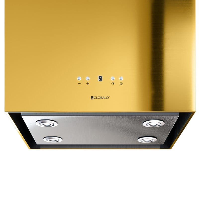 Klasa energetyczna B, wyspowy, szer. 40 cm, gł. 30 cm, sterowanie elektroniczne klawiszami Soft-Touch z wyświetlaczem LED, zakres prędkości: 3 biegi + boost, wydajność max. 784 m3/h, głośność min. 47 dB, wykonanie: stal lakierowana na kolor złoty, stal szlachetna (nierdzewna) Inox, oświetlenie POWER LED 4 x 3 W. Linia GLOBALO Exclusive Zalety i korzyści dla użytkownika okapu Toredo Isola 40.5 Gold Spektakularny, wyspowy okap kuchenny Toredo Isola 40.5 Gold to urządzenie, które absolutnie nie przypomina tradycyjnego okapu. To minimalistyczna, dekoracyjna bryła, która znakomicie prezentuje się w nowoczesnych przestrzeniach.✅Dane szczegółowe: