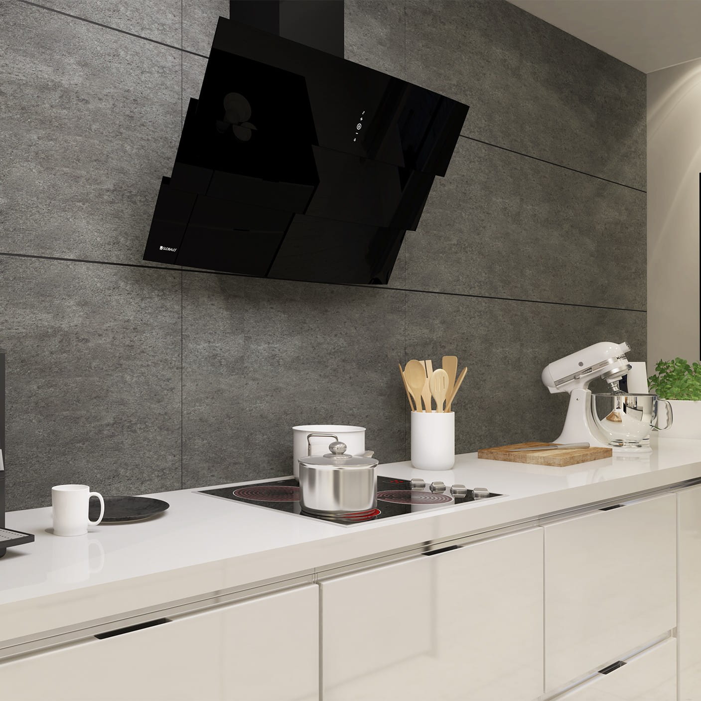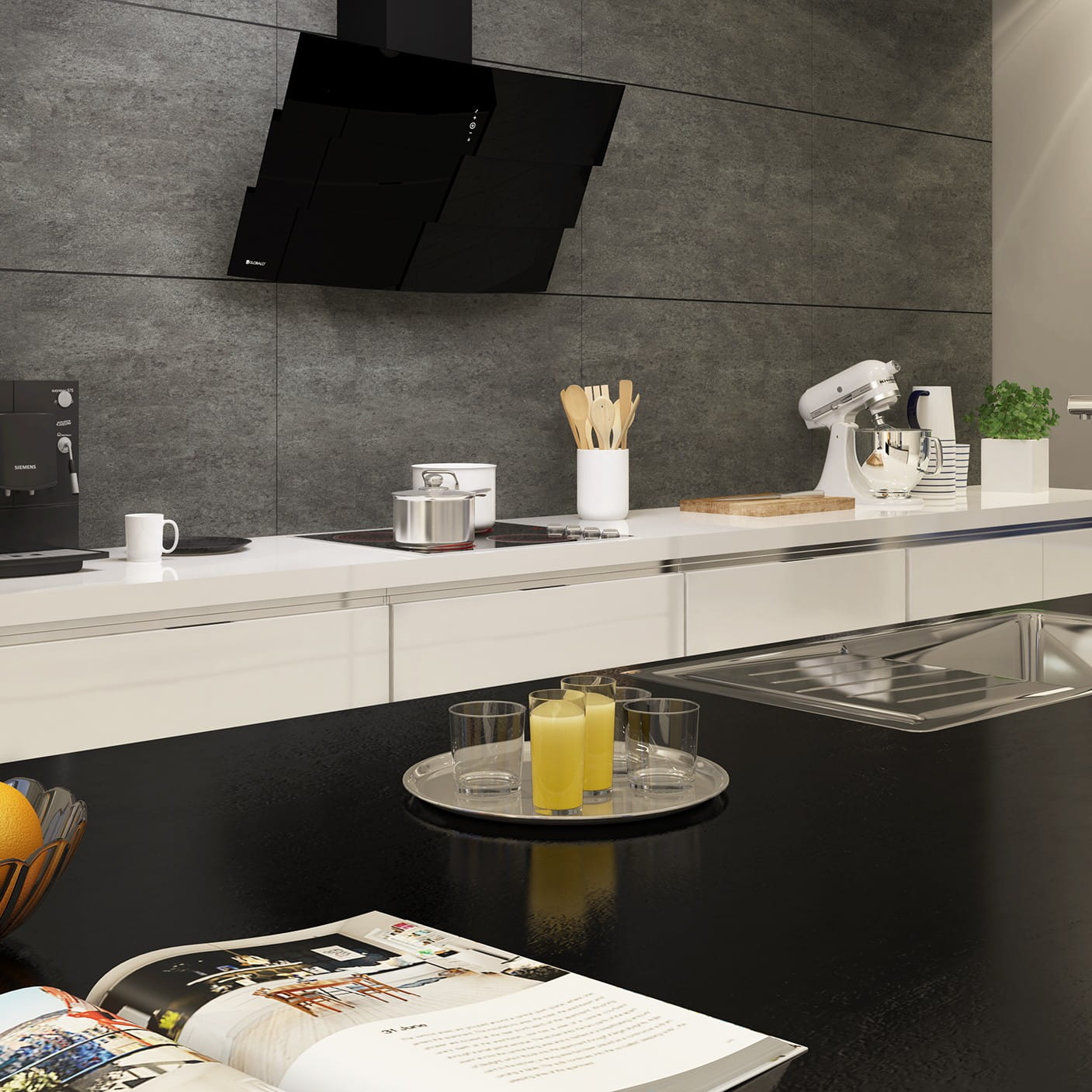 Klasa energetyczna A, przyścienny skośny, szer. 90 cm, gł. 40 cm, sterowanie sensorowe (dotykowe) z wyświetlaczem LED, zakres prędkości: 3 + boost, wydajność max. 720 m3/h, głośność min. 51 dB, wykonanie: czarne hartowane szkło, stal lakierowana na czarno, oświetlenie diodowe 2 x 3 W, dodatki: pilot, możliwość malowania okapu na dowolny kolor. Linia GLOBALO Design Zalety i korzyści dla użytkownika okapu Vintio 90.2 Black Vintio 90.2 Black to okap skośny w kolorze czarnym. To piękne i energooszczędne urządzenie, które zachwyca miłośników estetycznych i funkcjonalnych rozwiązań. Maksymalna wydajność: 720 m3/h Klasa energetyczna: A Sterowanie dotykowe + pilot Funkcjonalności: Okap kuchenny Vintio 90.2 Black to designerskie urządzenie, które może działać w jednym z 2 praktycznych trybów. Tryb pochłaniacza odpowiedzialny jest za oczyszczanie powietrza, zaś tryb wyciągu za wyprowadzanie oparów poza powierzchnię budynku mieszkalnego. Wyciąg możliwy jest tylko wtedy, gdy mamy dojście do kanału wentylacyjnego. Vintio 90.2 Black ma zamontowany wielowarstwowy filtr aluminiowy, który gromadzi tłuste związki i zapobiega tworzeniu się lepkiej warstwy na powierzchni mebli, sprzętów i kafli kuchennych. W trybie pochłaniacza można także dokupić filtr węglowy neutralizujący brzydką woń ulatniającą się z garnków podczas gotowania. Prezentowany przez nas model okapu kuchennego posiada delikatne, a zarazem funkcjonalne oświetlenie LED. Ta stylowa iluminacja oświetli nam płytę grzewczą podczas przygotowywania kolacji, a także przyczyni się do wykreowania miłej atmosfery w czasie wieczornych rozmów w kuchni. Funkcjonalne dotykowe sterowanie umożliwia obsługę okapu Vintio 90.2 Black koniuszkiem palca. Dodatkowo w zestawie znajduje się pilot, który pozwala na zdalną regulację ustawień. Okap kuchenny Vintio 90.2 Black posiada 3-stopniową regulację prędkości oraz funkcję boost (335 m3/h - 810 m3/h). Ten stosunkowo szeroki zakres szybkości pochłaniania oparów pozwoli szybko i sprawnie dostosować pracę urządzenia do naszych potrzeb. Na uwagę zasługuje również piętnastominutowy timer. Przeznaczenie: Okap przyścienny skośny Vintio 90.2 Black to urządzenie przeznaczone do nowoczesnych i przestronnych pomieszczeń kuchennych, w których ważny jest także wygląd AGD. Materiały: Całość wykonana została z cenionych przez klientów materiałów: solidnej stali oraz hartowanego szkła w kolorze czarnym. Dobrze wiedzieć! Proste zabrudzenia ścieramy z okapu wilgotną ściereczką. W przypadku tłustych, lepkich plam zaleca się stosowanie specjalnych sprayów marki Berner. Id produktu Id184#