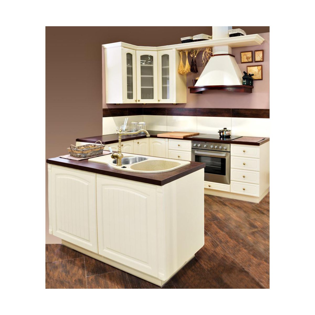 Okap Rustica nova idealnie pasuje do kuchni rustykalnych oraz w stylu angielskim. Świetnie sprawdzi się tam, gdzie dominuje ciepła i pastelowa kolorystyka.