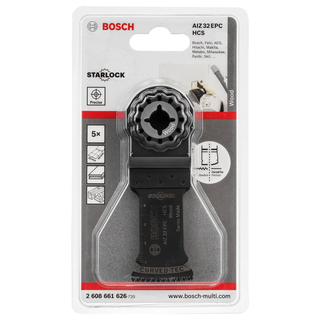 Ostrze, które pasuje do narzędzi wielofunkcyjnych z uchwytem Starlock marki Bosch. Ostrze jest przeznaczone do cięcia drewna.