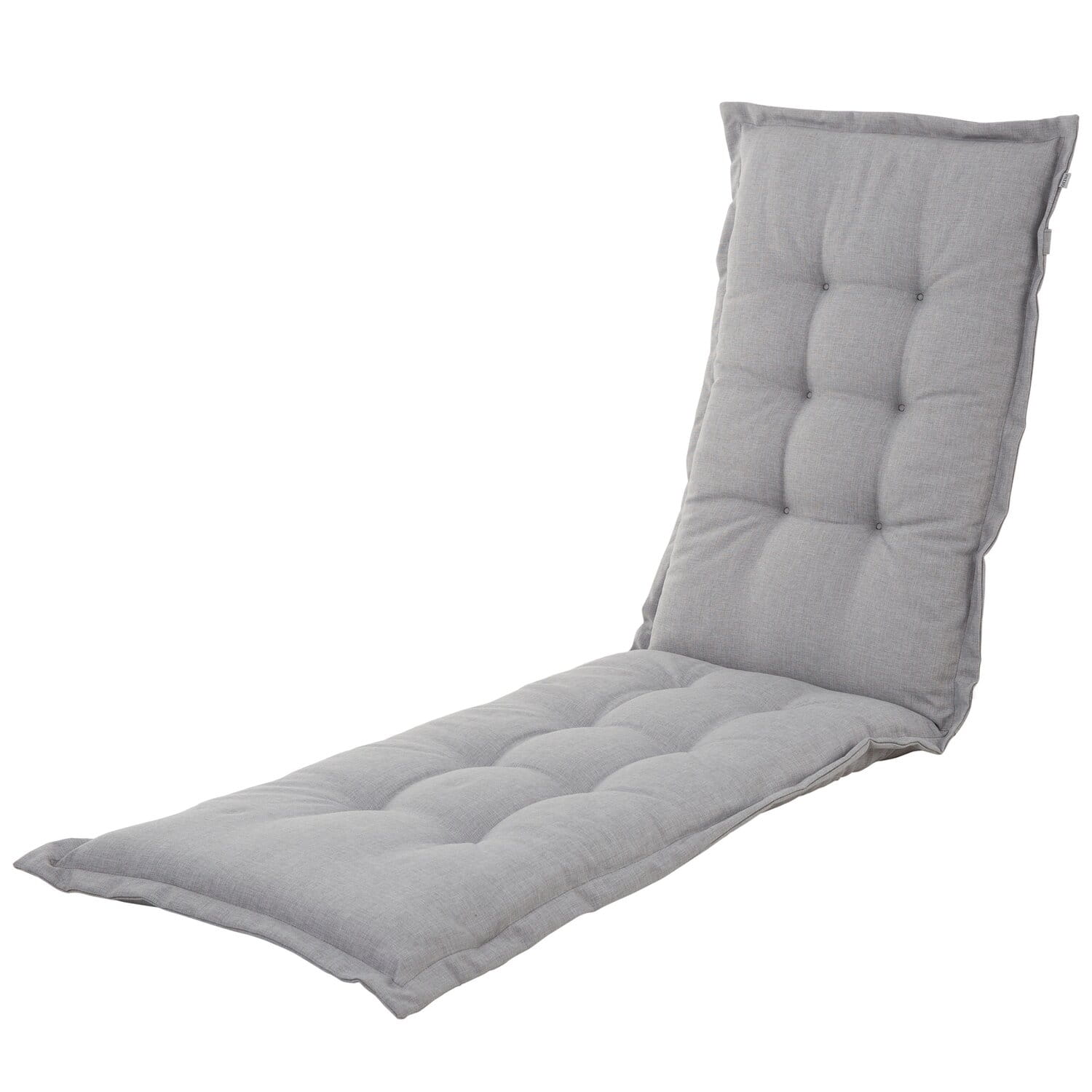 Poduszka na fotel z podnóżkiem z rantem o szer. 3 cm. W części oparciowej pasek z regulacją długości. W zgięciu sznurki do przymocowania. Pikowana (oparcie x 6, siedzisko x 8). Wypełnienie: pianka poliuretanowa o gr. 3 cm owijana włókniną poliestrową. Wymiar: 175 x 50 x 8 cm. Produkcja polska - Dajar / Patio