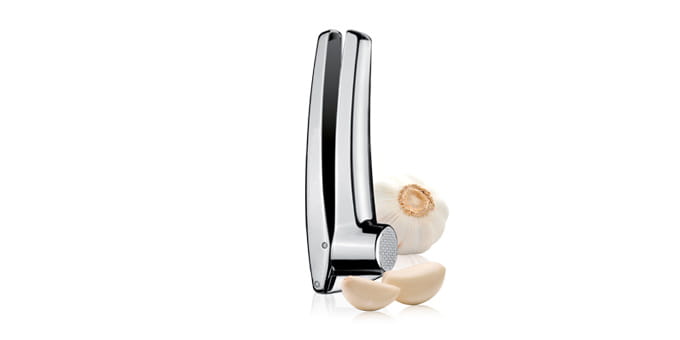 Ten praktyczny gadżet umożliwia wygodne wyciskanie czosnku, a dodatkowo posiada wielofunkcyjny wkład do czyszczenia. Wykonany został z trwałego stopu metali szlachetnych, a wkład został wykonany z wysokiej jakości tworzywa sztucznego. Co więcej, można go bez problemu myć w zmywarce.