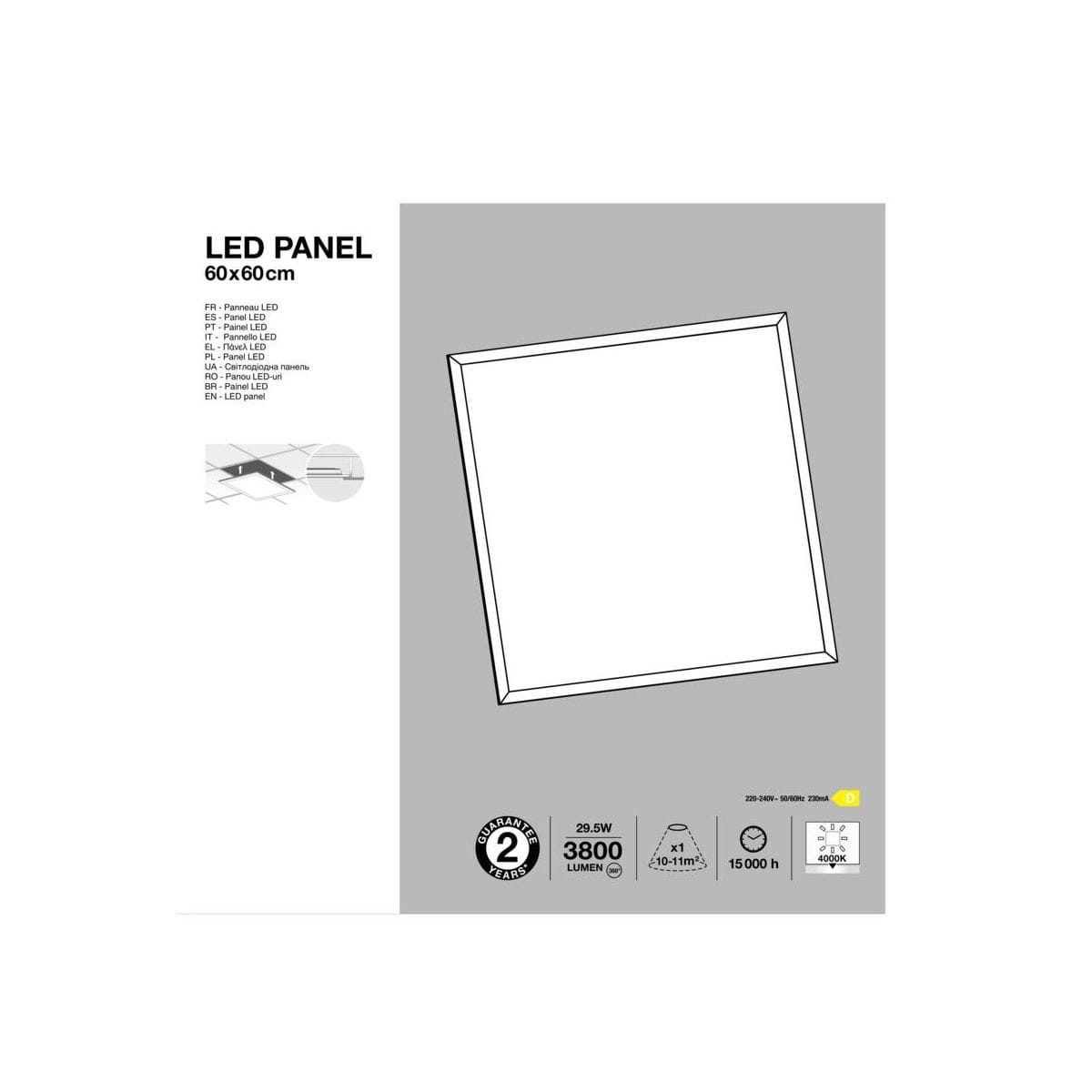 Panel LED IP20 60 cm 3800 lm biały