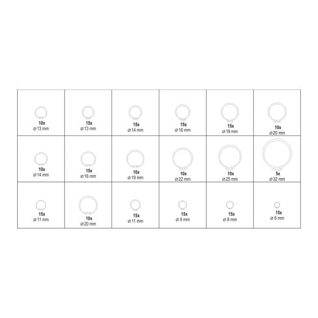 Pierścienie segera Yato zewnętrzne i wewnętrzne 225 szt.