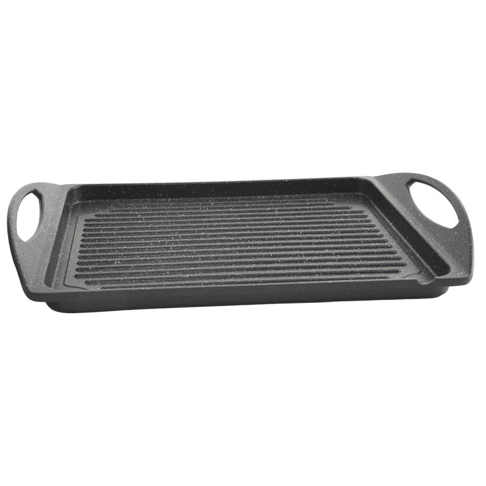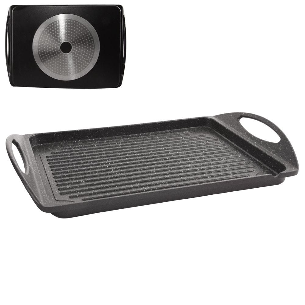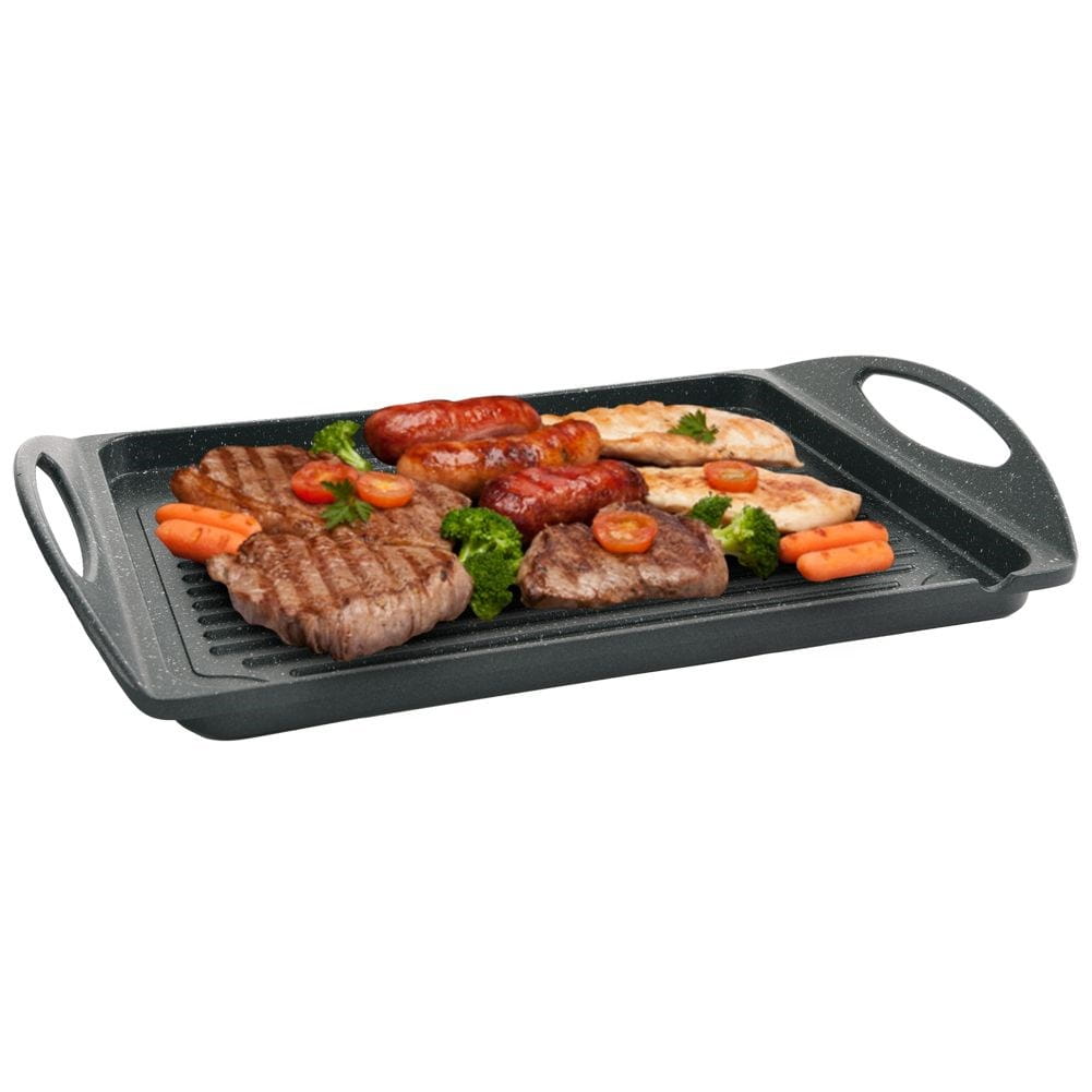 Płyta grillowa do stosowania na kuchence, grillu i w piekarniku. Wykonana z aluminium z nieprzywierającą powłoką granitową PFLUON GRANIT. Pasuje do każdego rodzaju kuchenek.✅Dane techniczne: