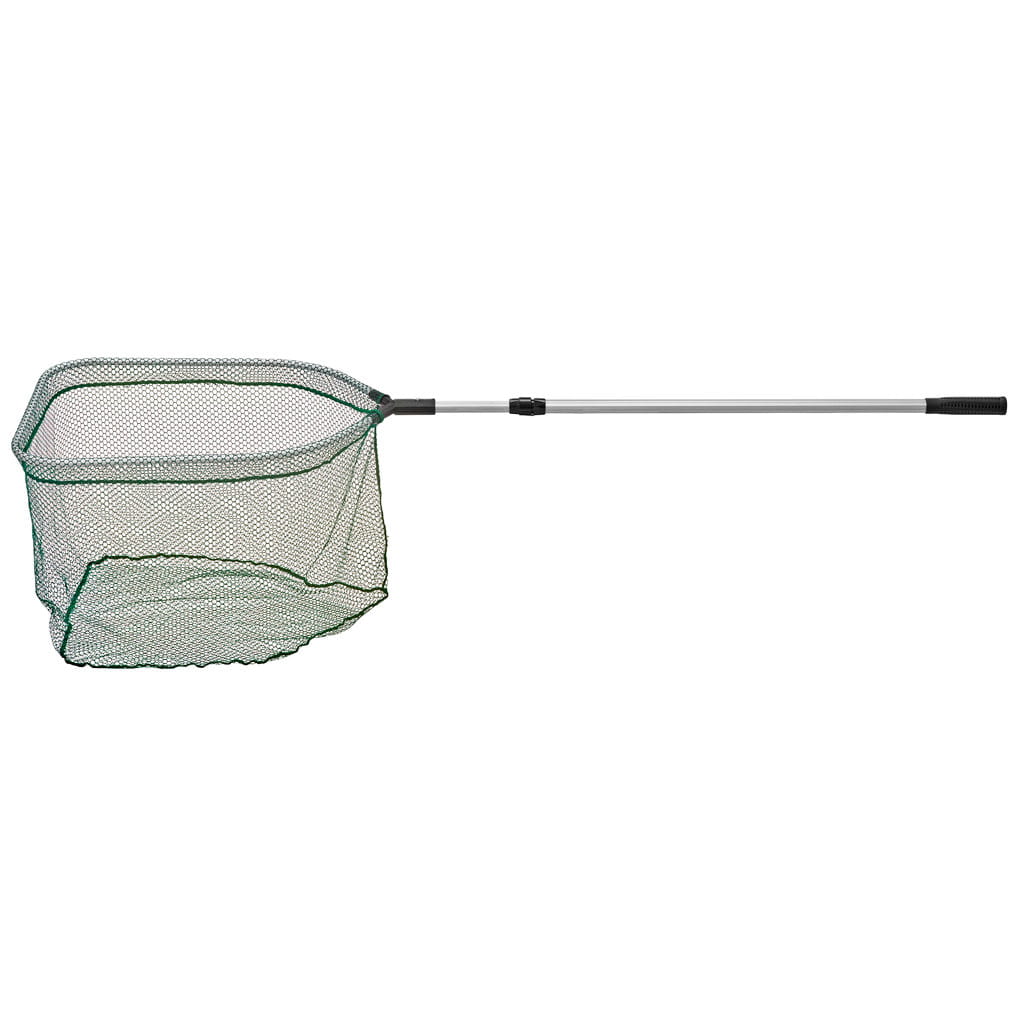 Teleskopowy podbierak wędkarski z bardzo dużym otworem! Duży podbierak marki Kayoba z teleskopowym trzonkiem regulowanym w zakresie 155–220 cm. Dodatkowa długość trzonka może być wielką zaletą, gdy wędkarz stoi w nieco niedogodnym miejscu i musi mocno się wychylać, aby podebrać rybę. Podbierak ma małe oczka (8 x 10 mm), dzięki czemu jest wyjątkowo delikatny dla ryb. Aluminiowy trzonek zakończony podgumowanym uchwytem. Stelaż również wykonano z aluminium.