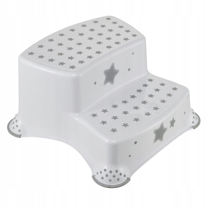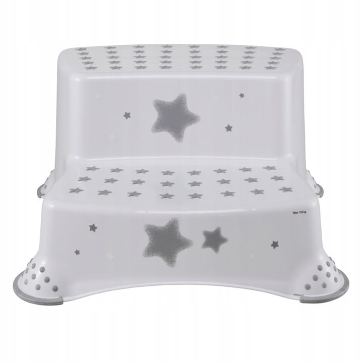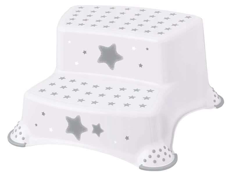 Podest - schodki o wymiarach 40 x 37 x 21 cm, w kolorze białym i ozdobione grafiką w stylu gwiazdek, to najnowsza propozycja marki KEEEPER na rynku. Ten dwustopniowy podest jest idealny dla najmłodszych, pomagając im dosięgnąć toalety, umywalki czy stołu. Jest nie tylko praktyczny i lekki, ale przede wszystkim bezpieczny. Antypoślizgowa gumowa powierzchnia na wierzchu oraz przy nóżkach stołka zapewnia stabilność podczas codziennych czynności. Dodatkowo, antypoślizgowe krawędzie sprawiają, że podest jest stabilny i bezpieczny. Może być używany nie tylko w łazience, ale również w innych miejscach, gdzie potrzebne jest bezpieczne podwyższenie. Produkt charakteryzuje się trwałą grafiką wykonaną w technologii IML, która nie jest naklejką. Jest łatwy w utrzymaniu czystości i został wyprodukowany w Polsce. Maksymalne obciążenie podestu wynosi aż 120 kg.