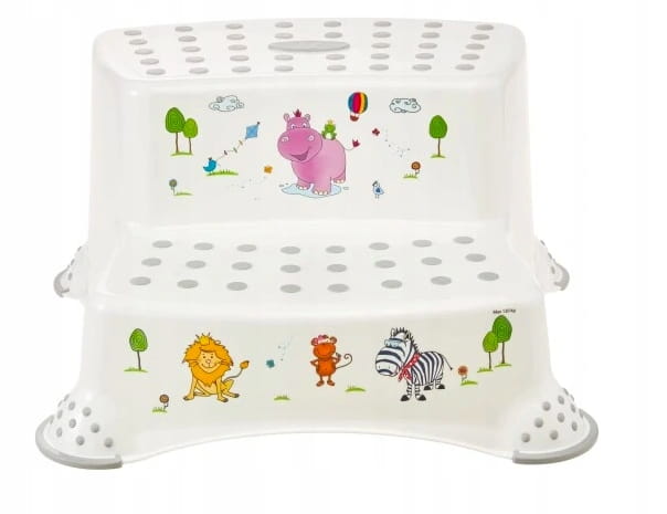 Dzięki dwóm różnym stopniom, ten produkt jest idealny dla najmłodszych dzieci, pomagając im osiągnąć toaletę, umywalkę, stół i wiele innych.