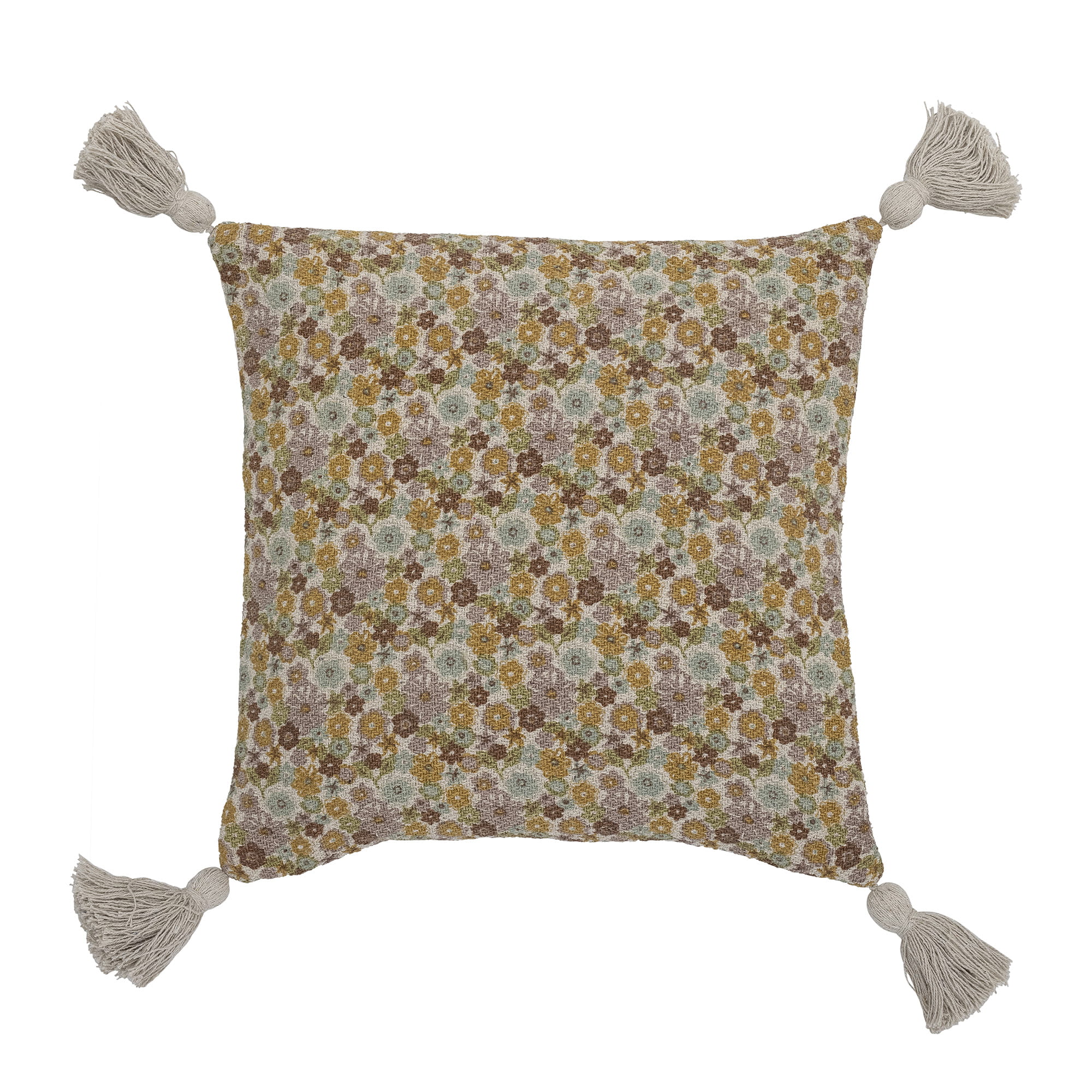 Poduszka Amilly marki Bloomingville MINI wykonana jest z bawełny z recyklingu w piękny kwiatowy nadruk w stonowanych kolorach. Poduszka ma urocze frędzle w każdym rogu.