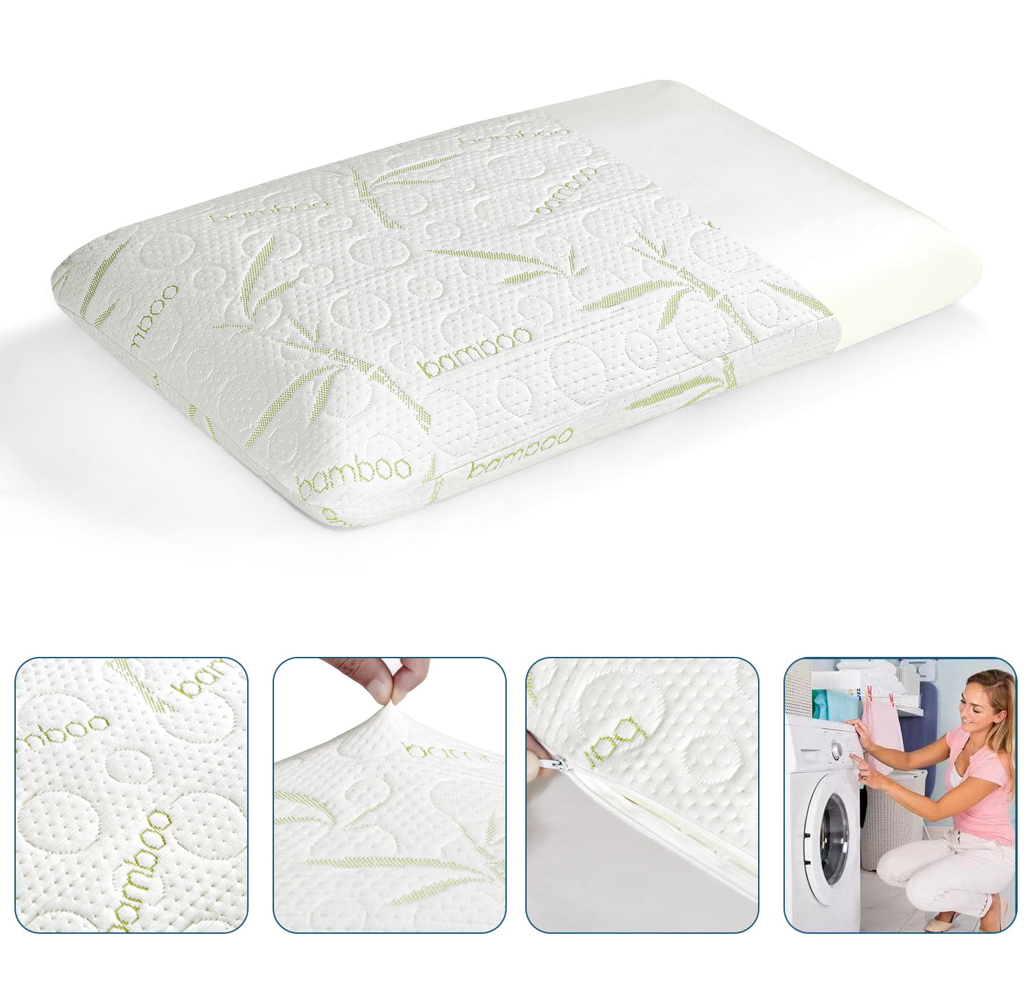 Dodatkowo, pokrowiec z wysokogatunkowego materiału z dodatkiem bambusowego włókna zapewnia antybakteryjne i hipoalergiczne właściwości. Dzięki właściwej cyrkulacji powietrza nie będziesz się pocić podczas snu. A zamek błyskawiczny umożliwia łatwe pranie w temperaturze do 40°C. Odkryj nowy wymiar snu z poduszką BAMBO!