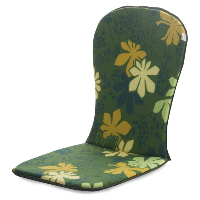Poduszka na krzesło z wysokim oparciem to praktyczne uzupełnienie zestawu mebli ogrodowych. Powstała z pianki poliuretanowej, tkaniny bawełnianej oraz lutrasilu, które odpowiadają za jej miękkość oraz miłą w dotyku fakturę. Produkt ma kolor zielony, który urozmaicono dodatkowo wzorem liści. Funkcjonalne troczki umożliwiają przywiązanie go do krzesła.