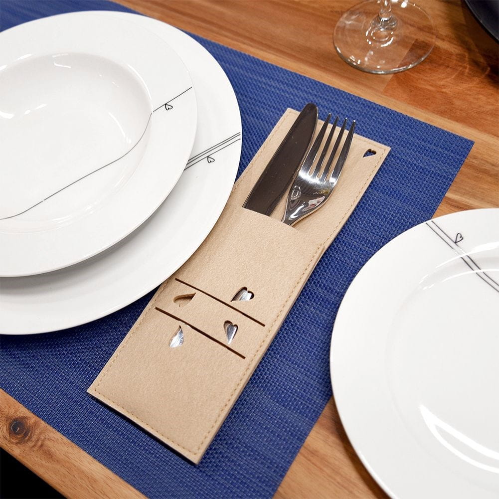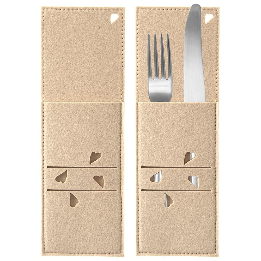 Pokrowiec etui na sztućce filcowy beż serca zestaw 2szt elegancki na stół