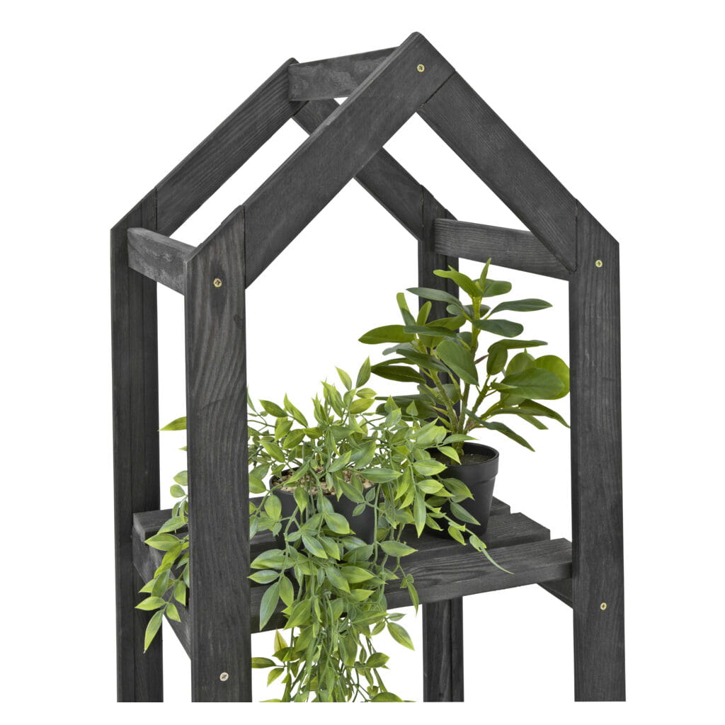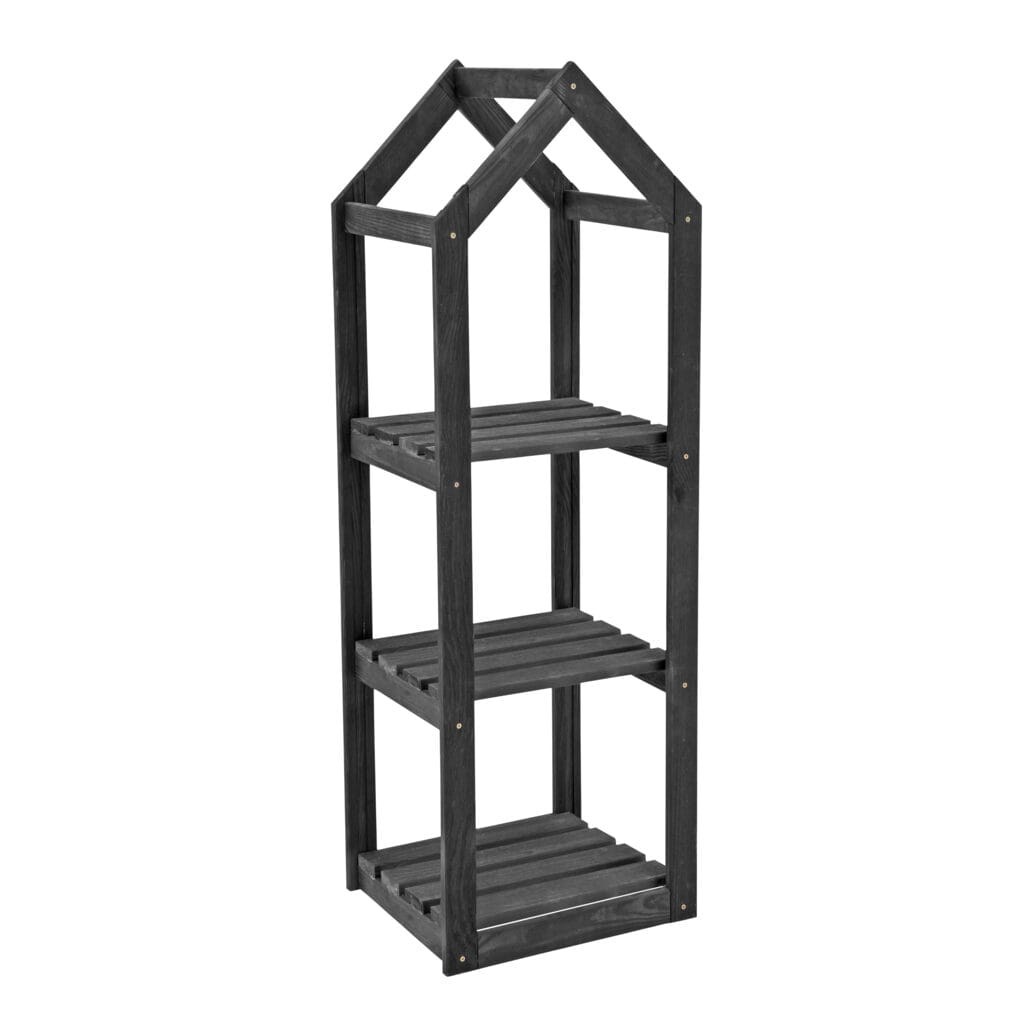 Półka na rośliny czarna drewniana Kwietnik Regał