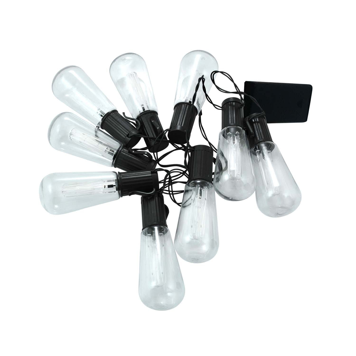 Girlanda wewnętrzna z ciepłym źródłem światła, zamknieta w przezroczystych żarówkach o podłużnym kształcie żarówki. Ozdobi każde mieszkanie, nada ciekawego charaketru. Zasilana na dwie baterie AA (brak w zestawie).