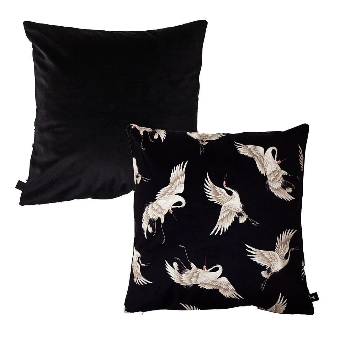 Welwetowa poszewka z nadrukiem w żurawie. Pasuje do wielu wnętrz, świetnie sprawdza się w tych loftowych, w towarzystwie drewna nabiera życia. Bogactwo i miękkość velvetu, który wciąż jest bardzo mocnym trendem w urządzaniu wnętrz, w połączeniu z głębią koloru pozwala uzyskać efekt wow. Materiał, z którego jest uszyta poszewka, jest bardzo łatwy w konserwacji. Zalecamy delikatne pranie i prasowanie na lewej stronie.