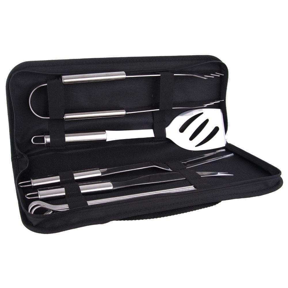 Przybory akcesoria do grillowania grilla w etui szczypce łopatka widelec nóż zestaw 9 el.