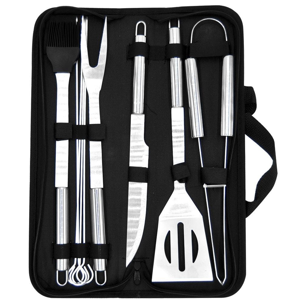 Komplet 10 przyborów wykonanych ze stali nierdzewnej przydatne podczas grillowania w walizce. W zestawie łopatka, widelec, szczypce, nóż, pędzel oraz szpikulce do szaszłyków.✅Dane techniczne: