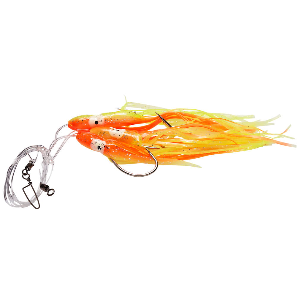 Przywieszka z ośmiorniczkami 16 cm! Przywieszka Kayoba z ośmiorniczkami doskonale sprawdza się między innymi podczas połowu dorszy i czarniaków. Przywieszka składa się z linki o długości 149 cm z trzema ośmiorniczkami o długości 16 cm rozmieszczonymi w odstępach 50 cm. W każdej z ośmiorniczek znajduje się solidny haczyk pojedynczy 9/0.