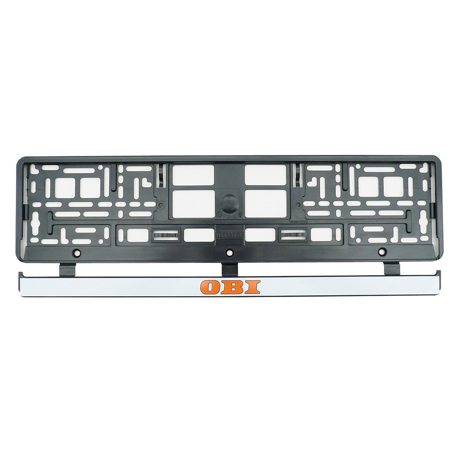 Ramka zatrzaskowa na tablicę rejestracyjną z logiem marki OBI.