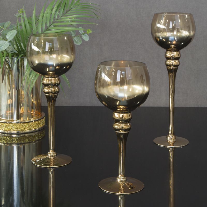 SZKLANY ŚWIECZNIK DEKORACYJNY CLOE 12X35 CM ZŁOTY