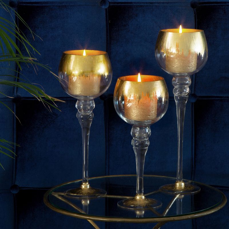 SZKLANY ŚWIECZNIK KIELICH 12X35 CM BIAŁY ZŁOTY