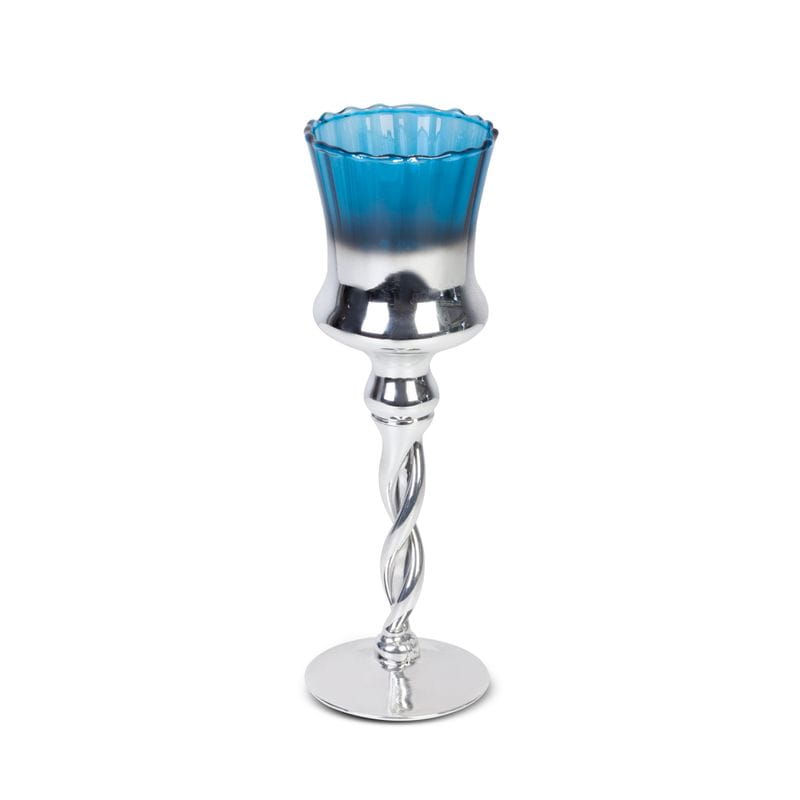 SZKLANY ŚWIECZNIK POJEDYŃCZY OZDOBNY 10X30 SREBRNY