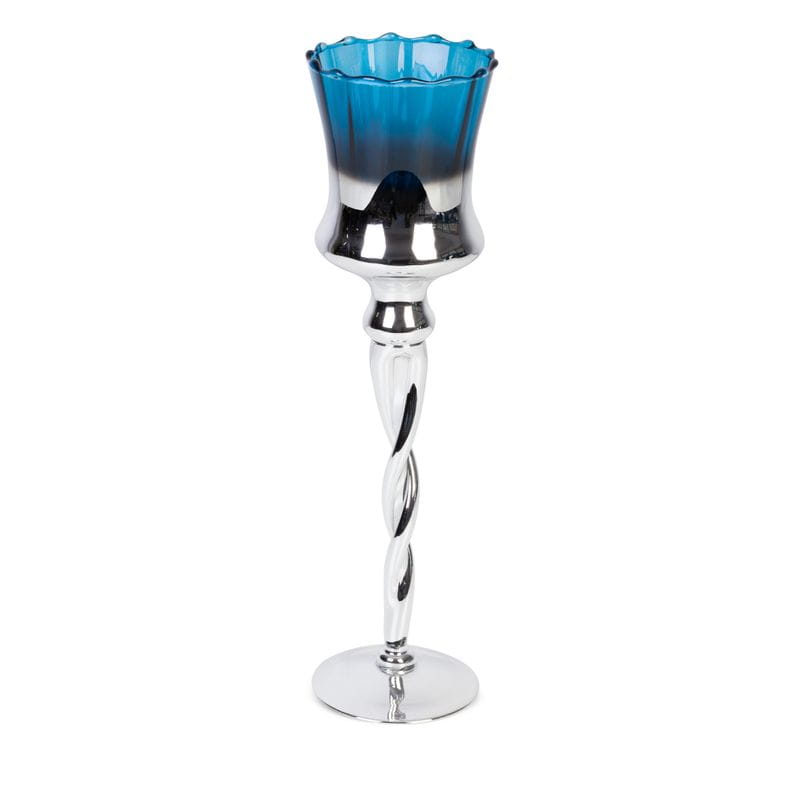 SZKLANY ŚWIECZNIK POJEDYŃCZY OZDOBNY 10X35 SREBRNY