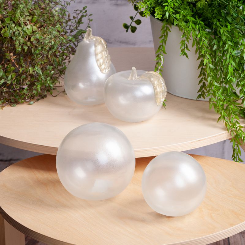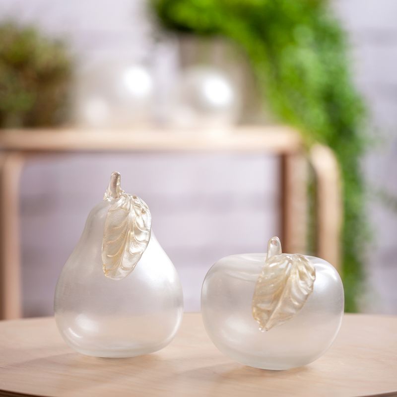 SZTUCZNY OWOC SZKLANA FIGURKA JABŁKO 13X12CM BIAŁA