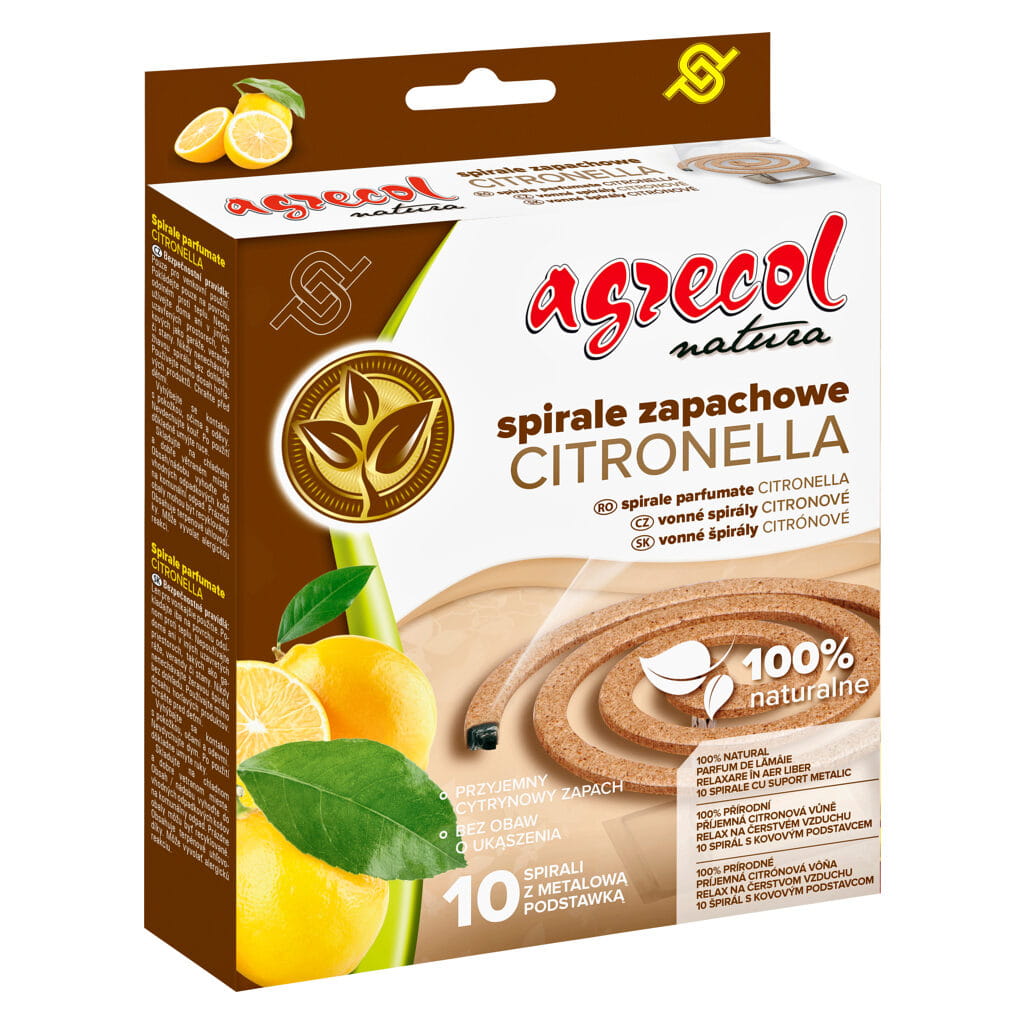 Nigdy więcej uciążliwych ukąszeń! Spirale wydzielają cytrynowy zapach, który jest przyjemny dla nas, ale który odstrasza komary. Spirale są dostarczane z metalowym stojakiem.