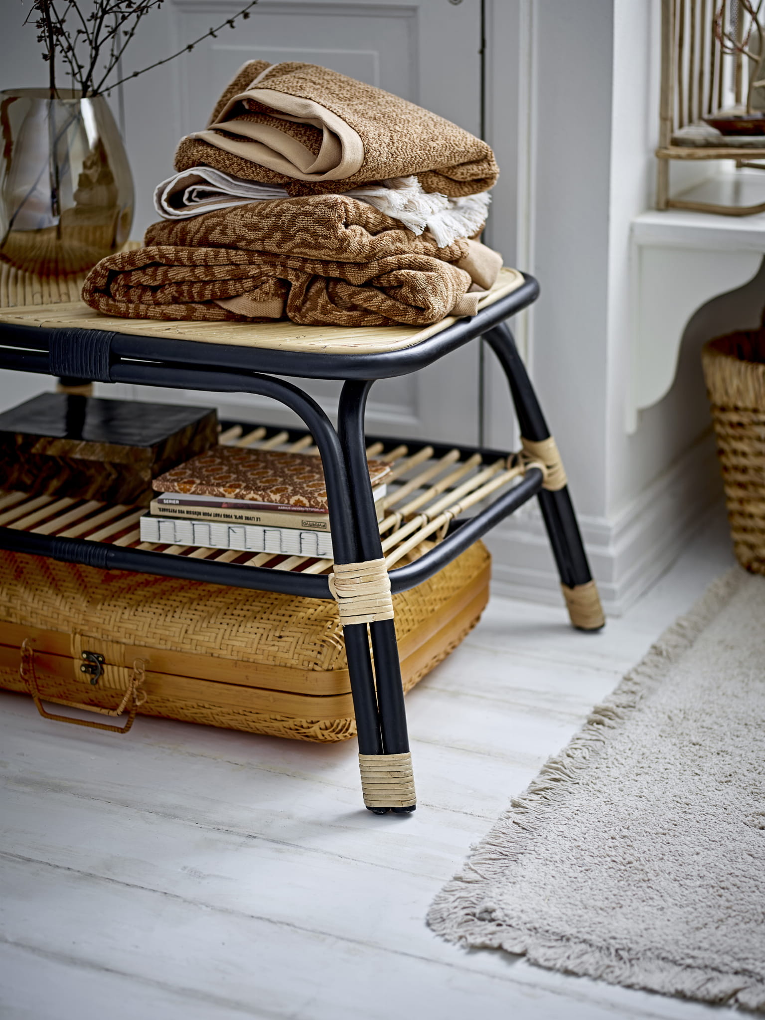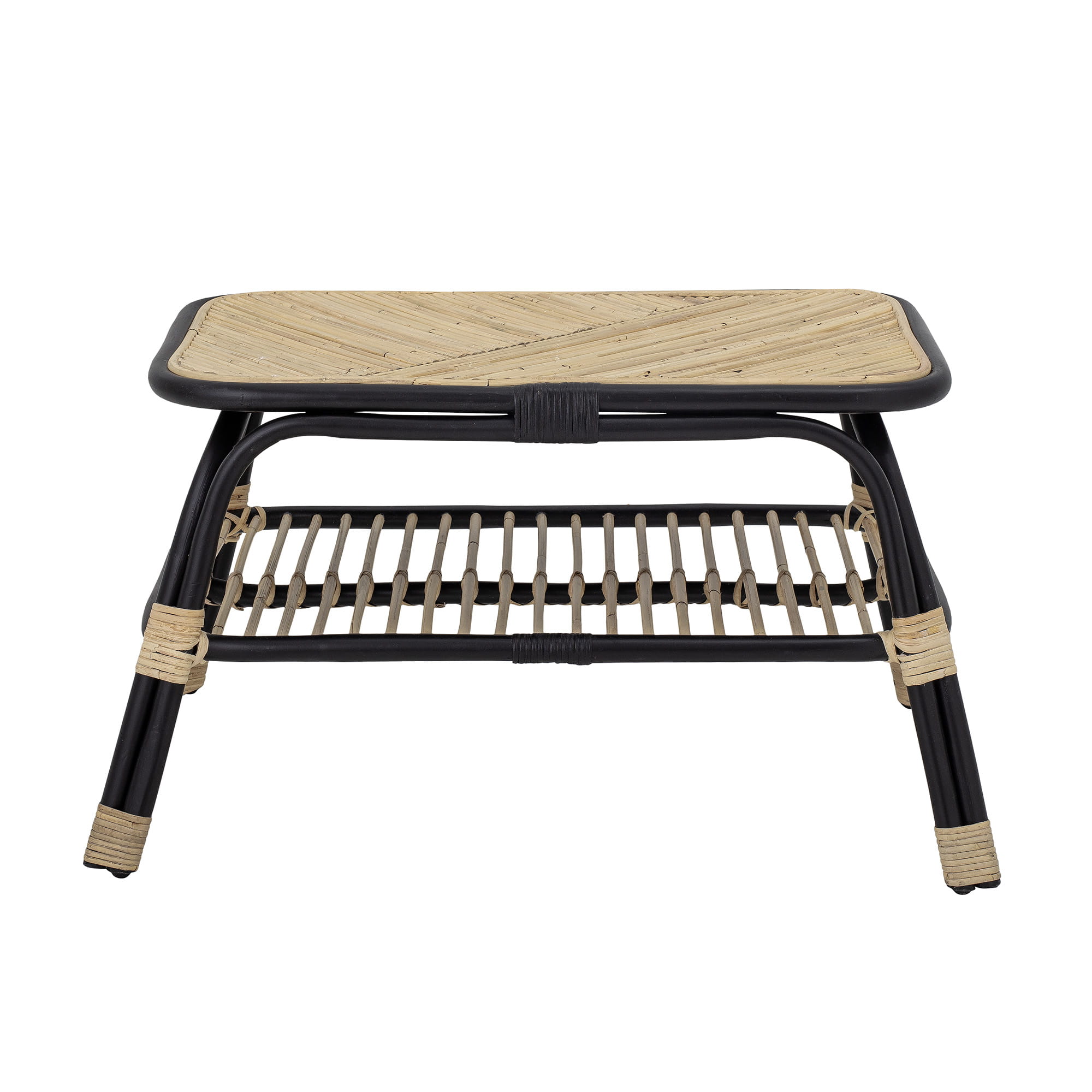 Stół boczny Loue zachwyci Cię pięknym designem i mieszanką kolorów. Stół boczny łączy w sobie naturalny i czarny rattan i posiada dolną półkę, na której można przechowywać czasopisma lub inne przedmioty dekoracyjne.